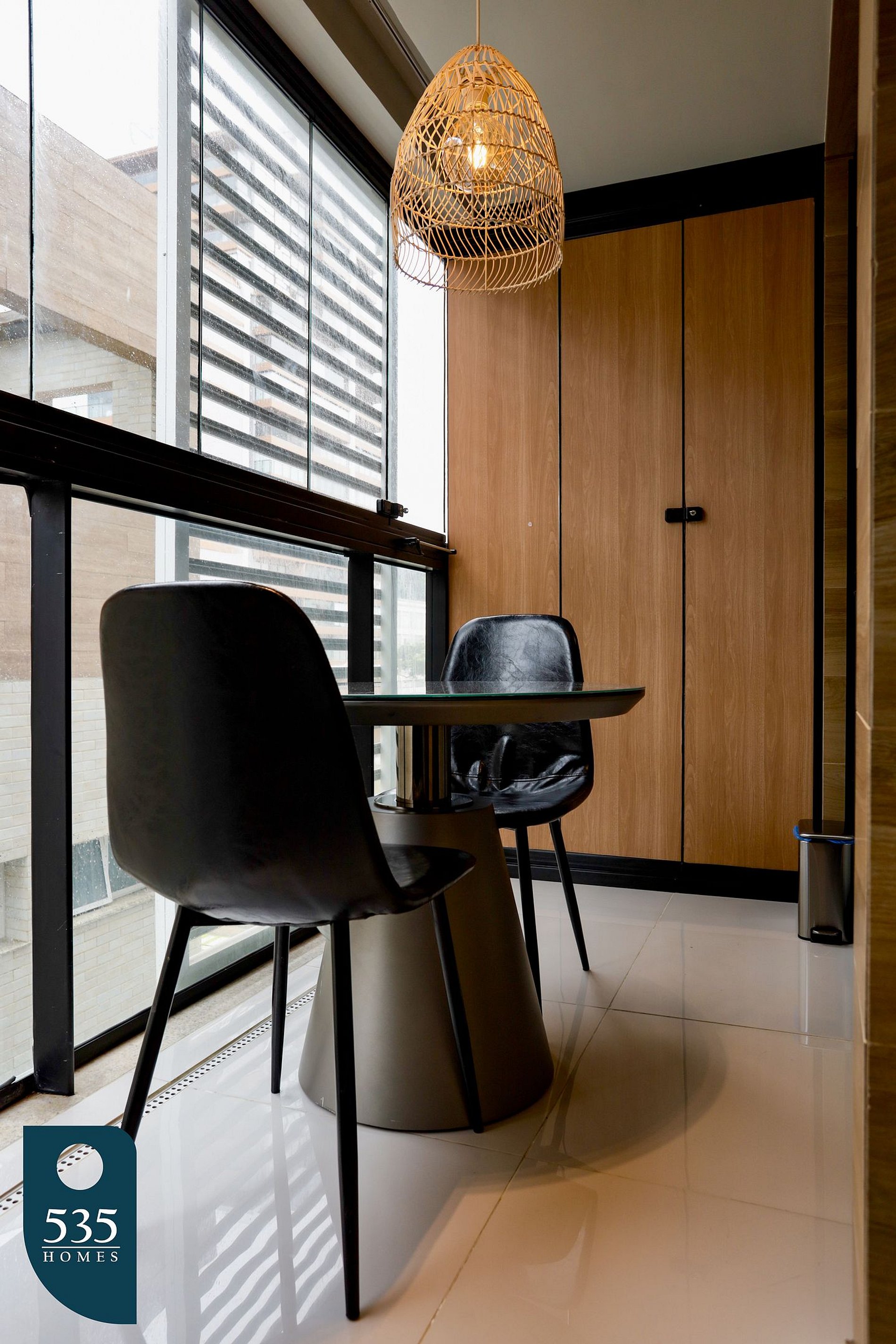 A varanda é um charme à parte, com uma mesa de jantar com cadeiras — um espaço perfeito para refeições ao ar livre ou para curtir o clima da cidade com tranquilidade.