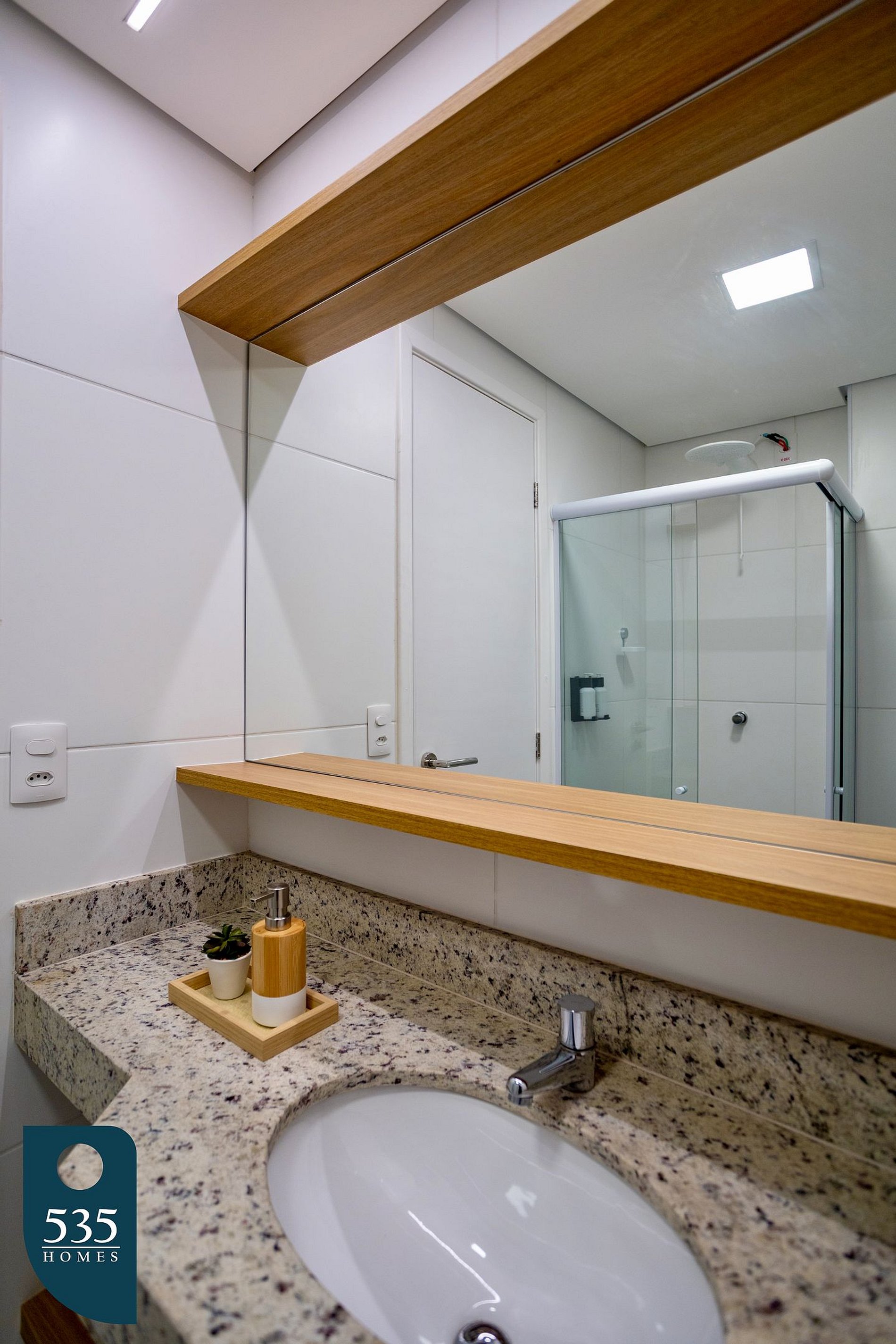 O apartamento é equipado com uma cozinha prática e funcional, que conta com cooktop de indução de duas bocas, geladeira, purificador de água, micro-ondas, sanduicheira, airfryer, liquidificador e máquina de café em cápsulas, oferecendo toda a conveniência para preparar suas refeições com conforto. No banheiro, há ducha higiênica, secador de cabelo, balde retrátil e varal de roupas fixo, garantindo praticidade para o dia a dia. No quarto, o ambiente é bem planejado e confortável, com Smart TV de 50 polegadas, cortina blackout que proporciona um ótimo escurecimento, mesa de refeições com duas cadeiras, ferro de passar roupa e mesa compacta para passar, unindo funcionalidade e bem-estar em um só lugar.