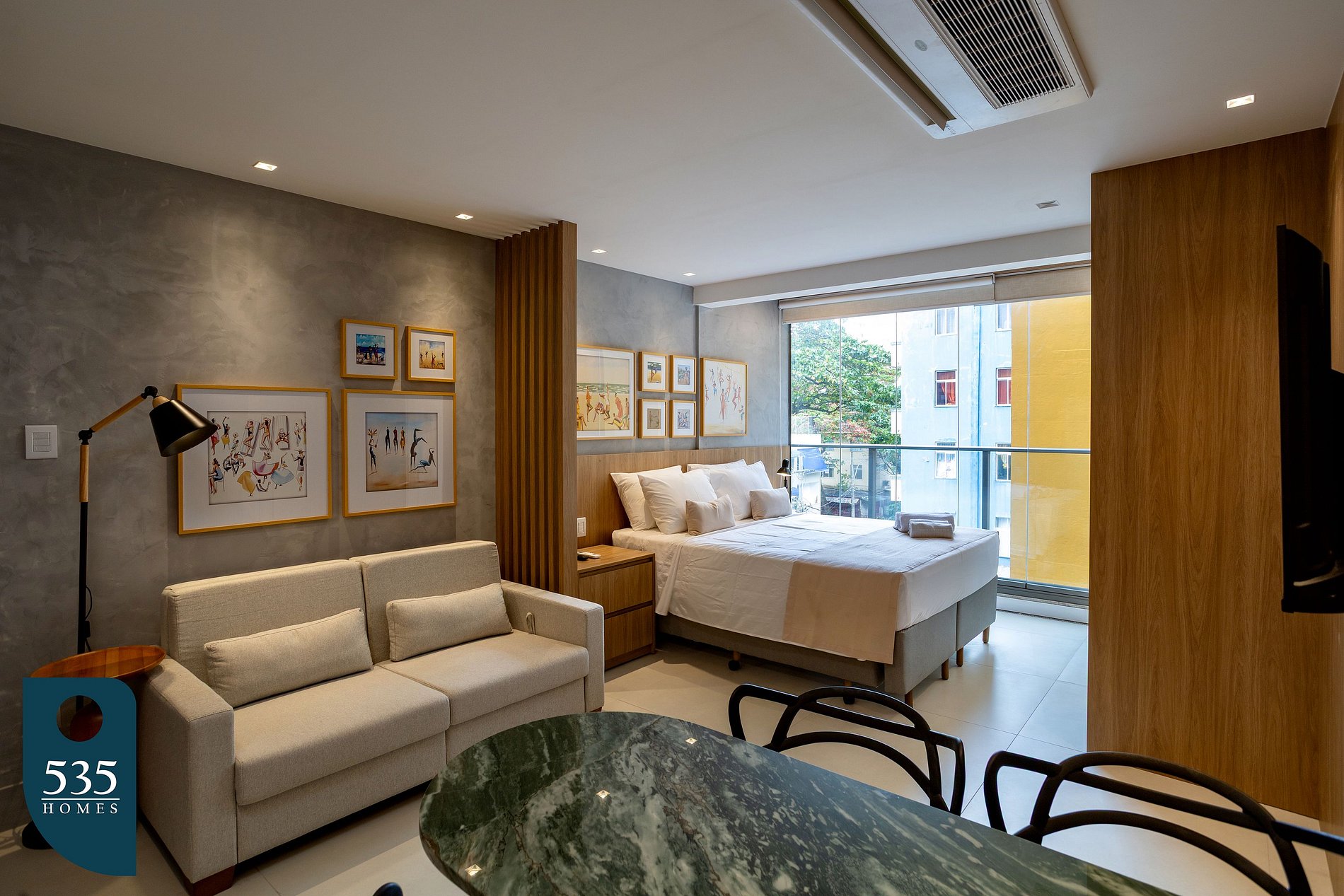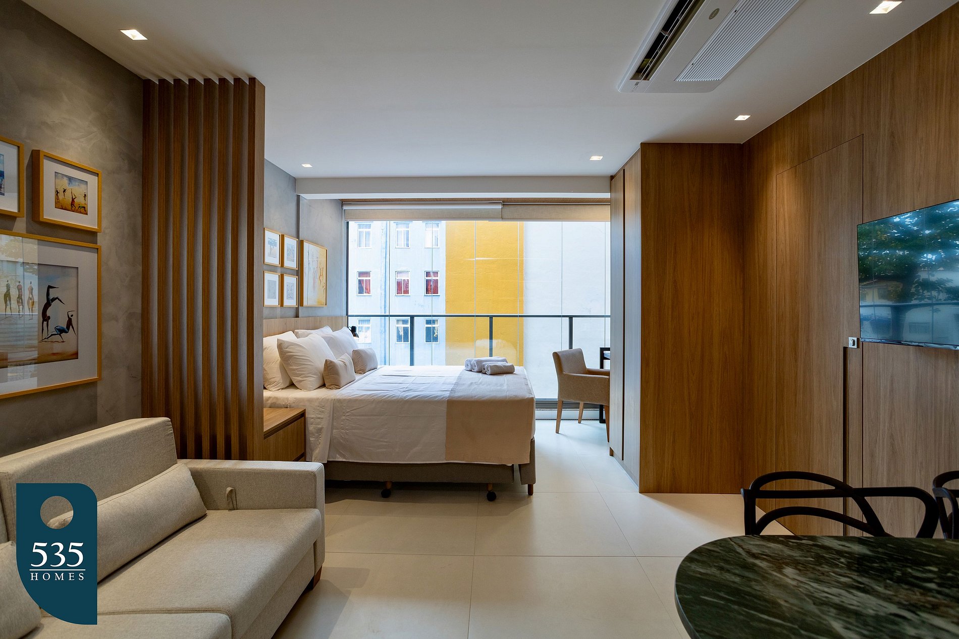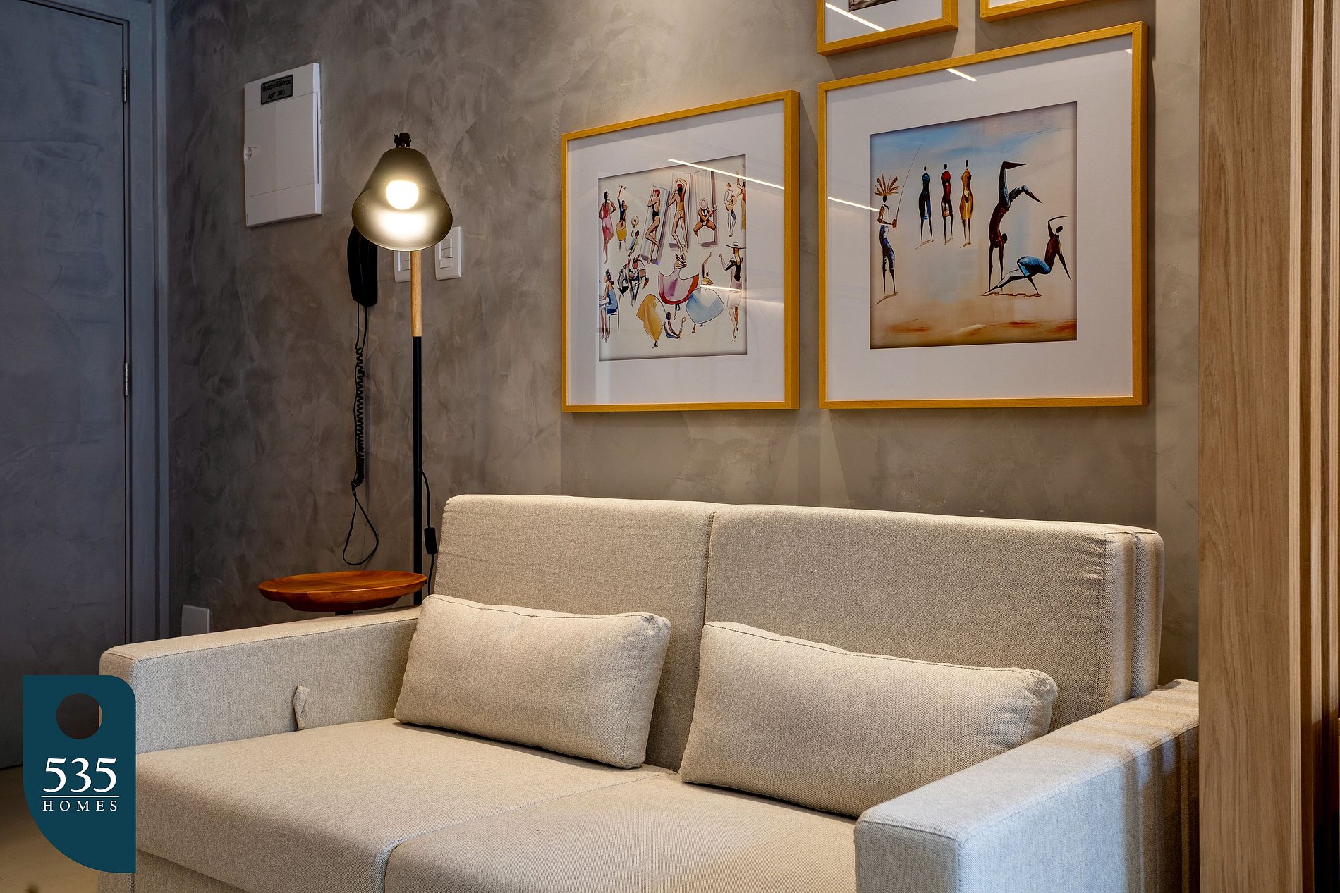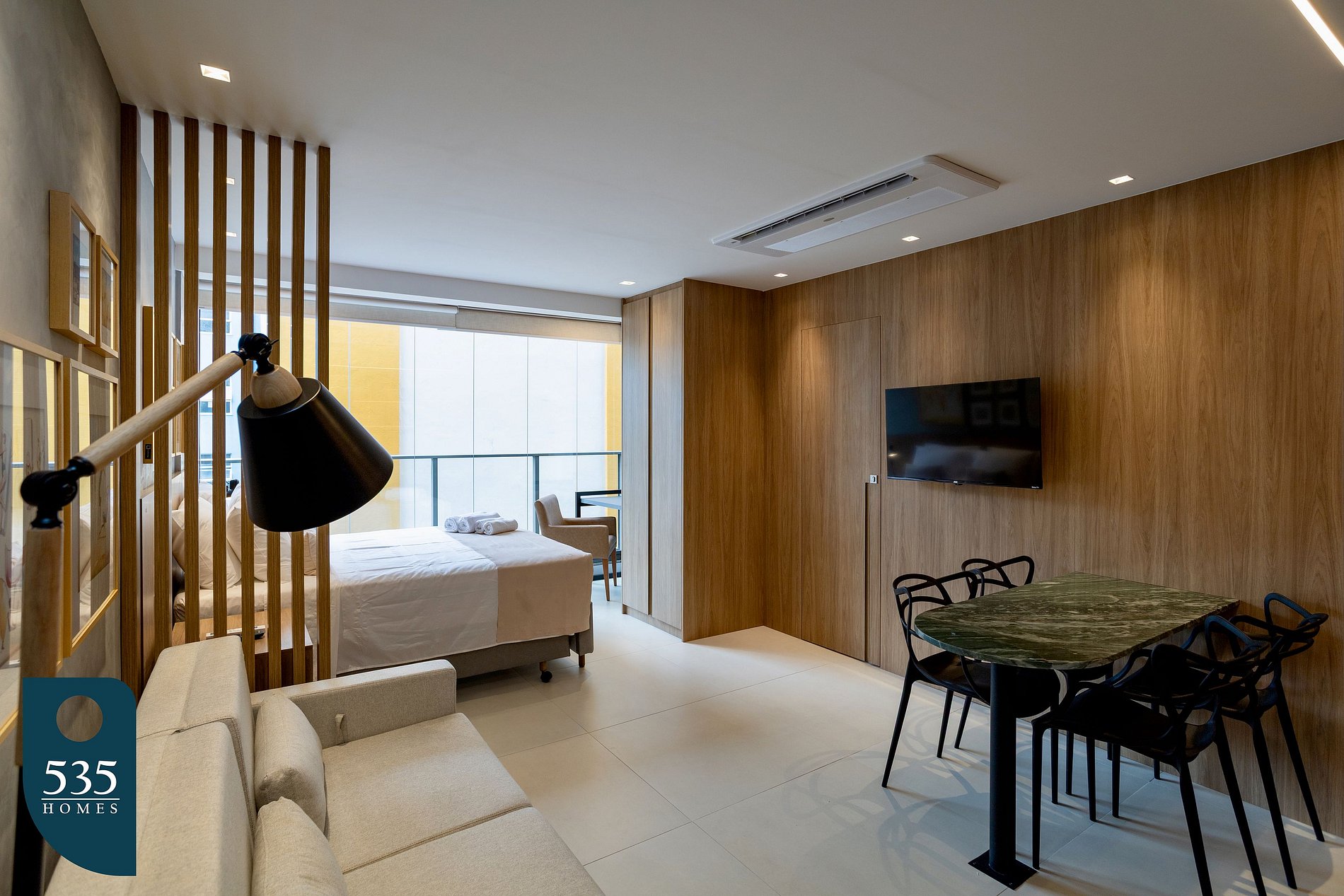 O apartamento oferece uma estrutura completa e funcional, ideal para quem busca praticidade sem abrir mão do conforto. A cozinha é equipada com cooktop de indução com duas bocas, depurador de ar retrátil, purificador de água, geladeira, micro-ondas com grill, torre de tomadas, torneira gourmet, liquidificador, sanduicheira, airfryer, máquina de café.