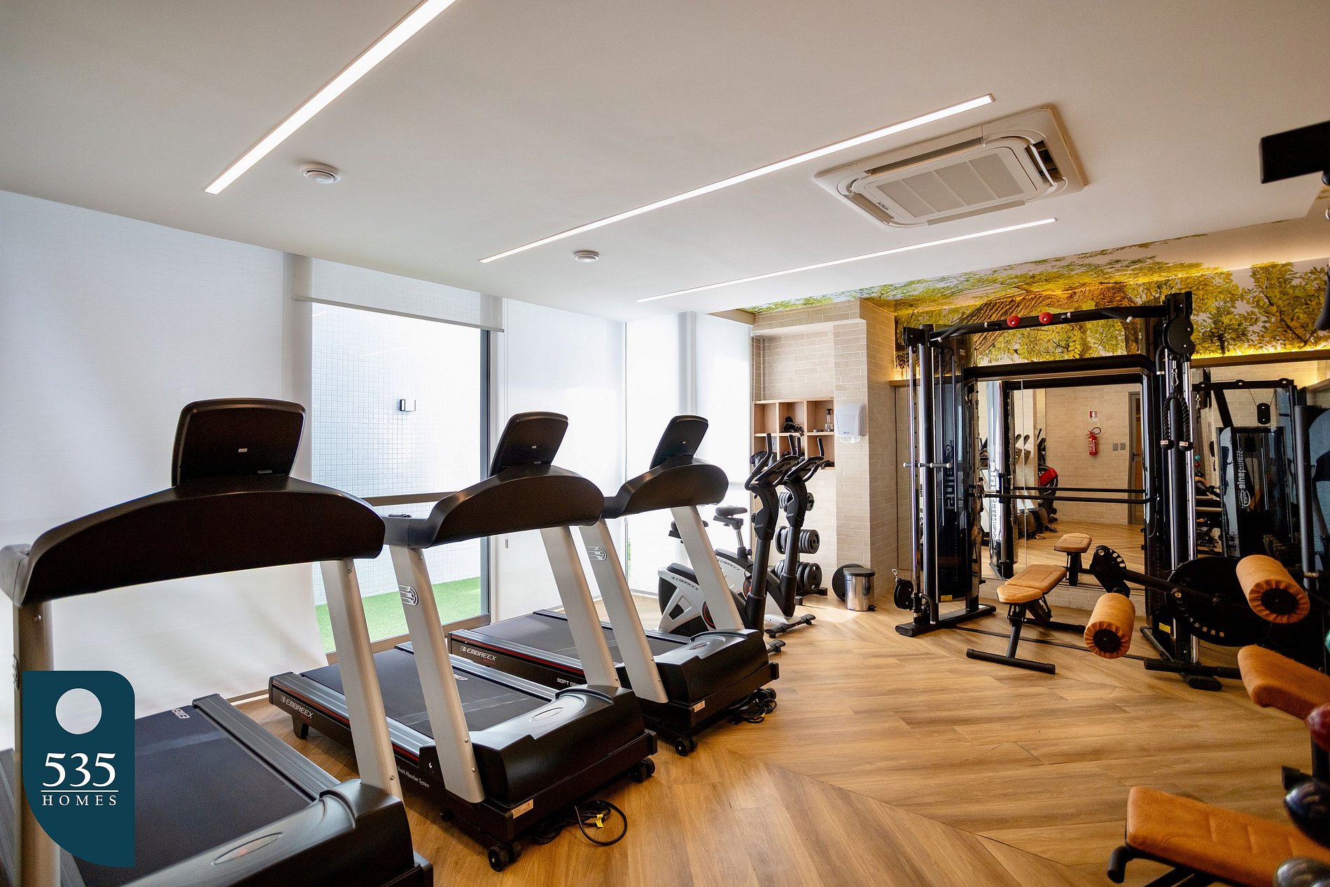 O condomínio conta com academia bem equipada, piscina com acessibilidade por elevador, dois espaços gourmet ideais para encontros, lavanderia compartilhada e bicicletário, oferecendo praticidade e lazer para sua estadia.