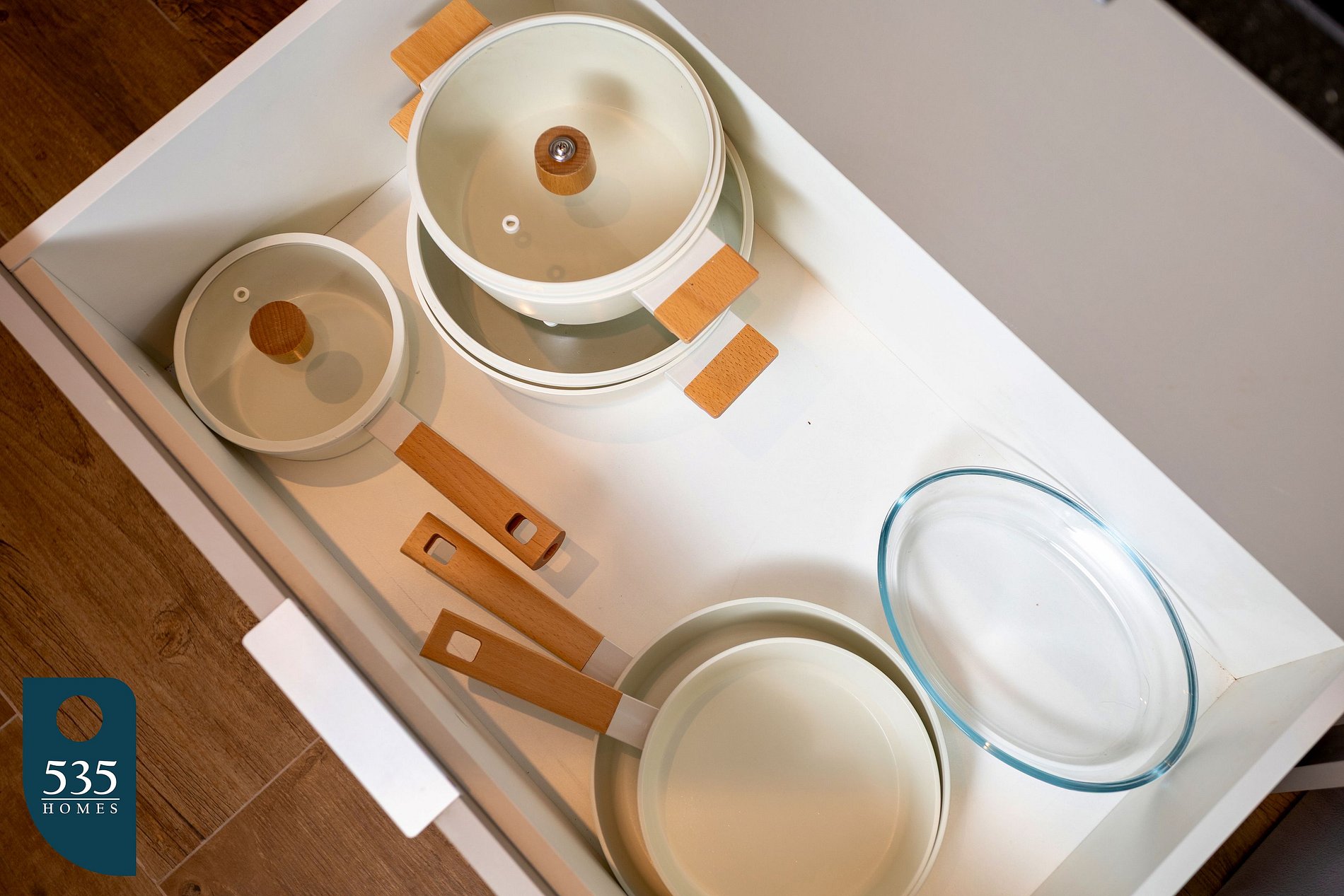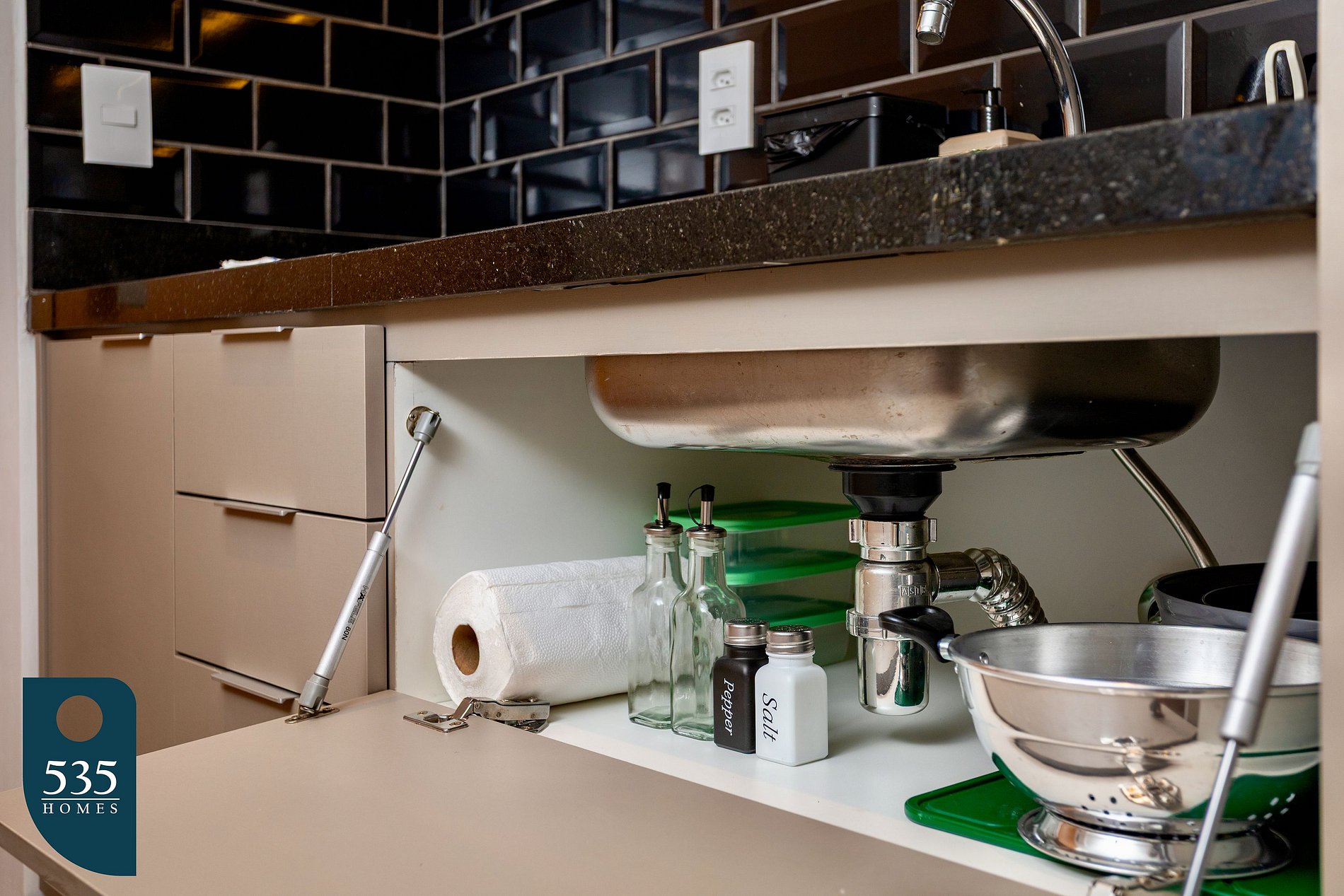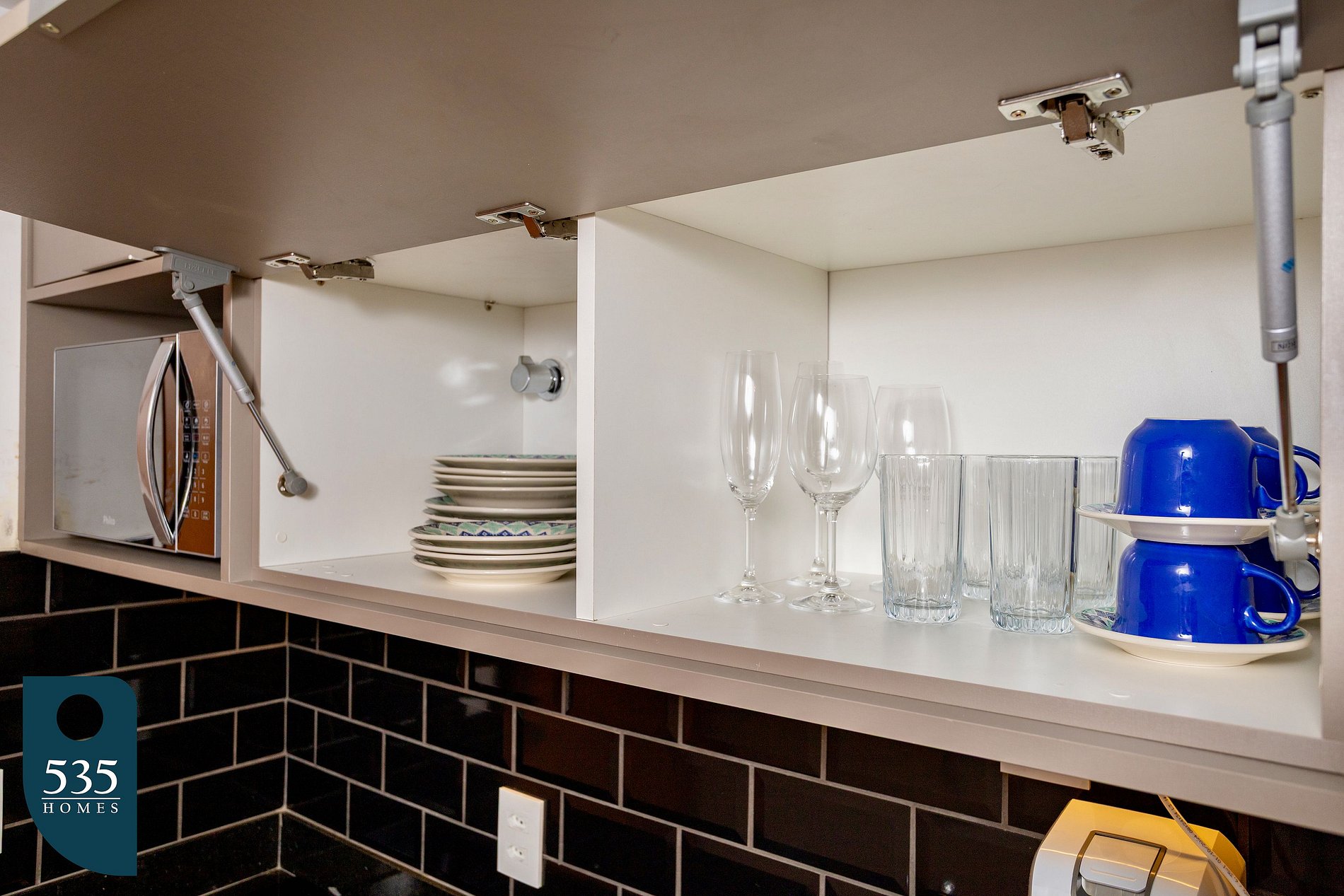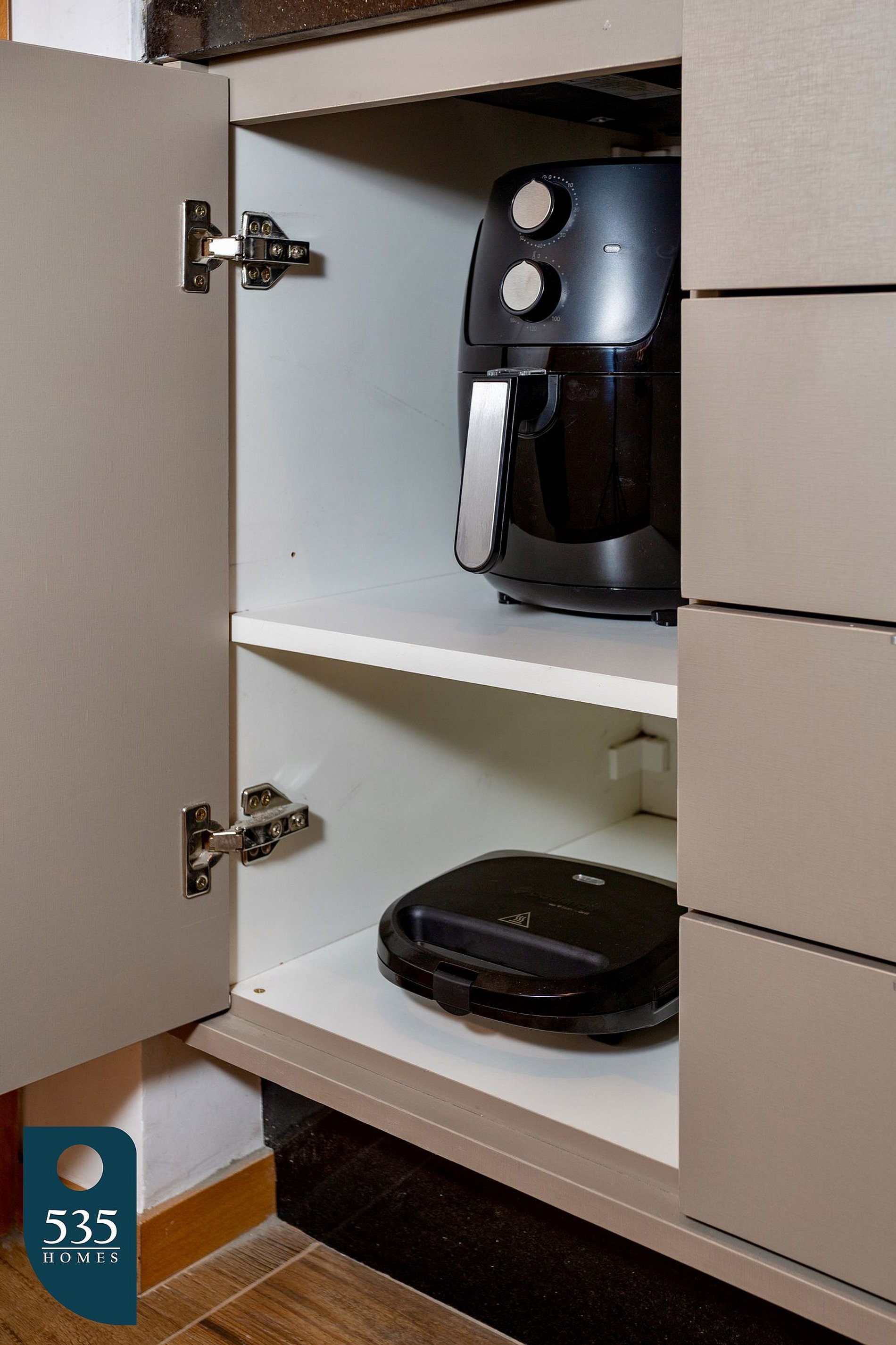 Na cozinha, você encontra um espaço completo e bem equipado, ideal para quem gosta de cozinhar ou preparar refeições rápidas no dia a dia. O ambiente conta com cooktop de indução de duas bocas, micro-ondas, geladeira, purificador de água, máquina de café, airfryer, chaleira elétrica, liquidificador e sanduicheira. Além disso, dispõe de diversos utensílios, incluindo abridor de vinho, cortador de pizza, ralador e peneiras, garantindo toda a praticidade durante a estadia.