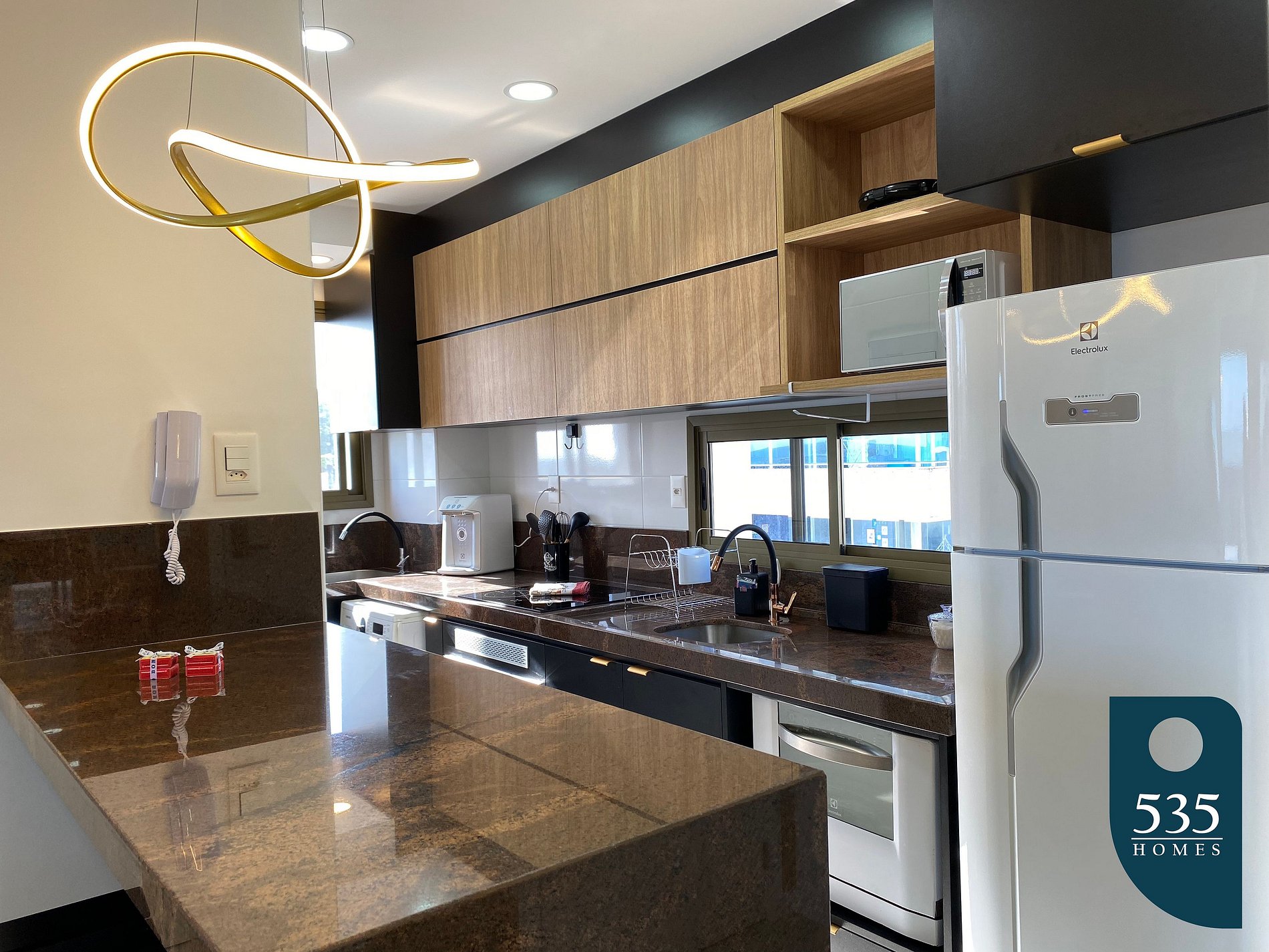 Este apartamento foi decorado e equipado para que você se sinta em casa. Com internet veloz de 250 Mbps, você estará sempre conectado, ideal para trabalho remoto, streaming ou navegação na web. A cama de casal proporciona noites tranquilas, enquanto a cozinha está equipada com todos os itens essenciais, como geladeira, ferro, forno elétrico, fogão cooktop por indução com 4 bocas, micro-ondas, sanduicheira e liquidificador.