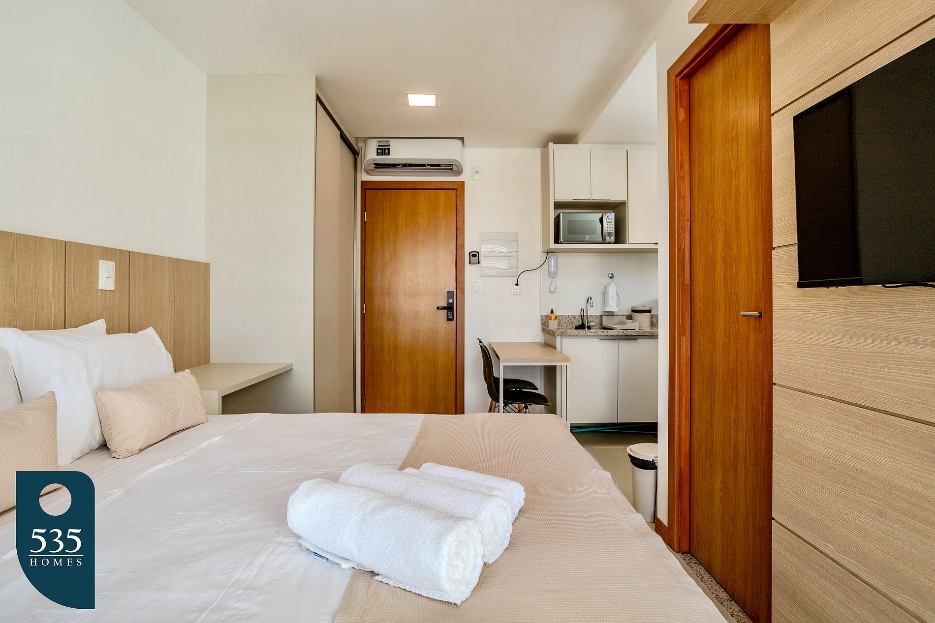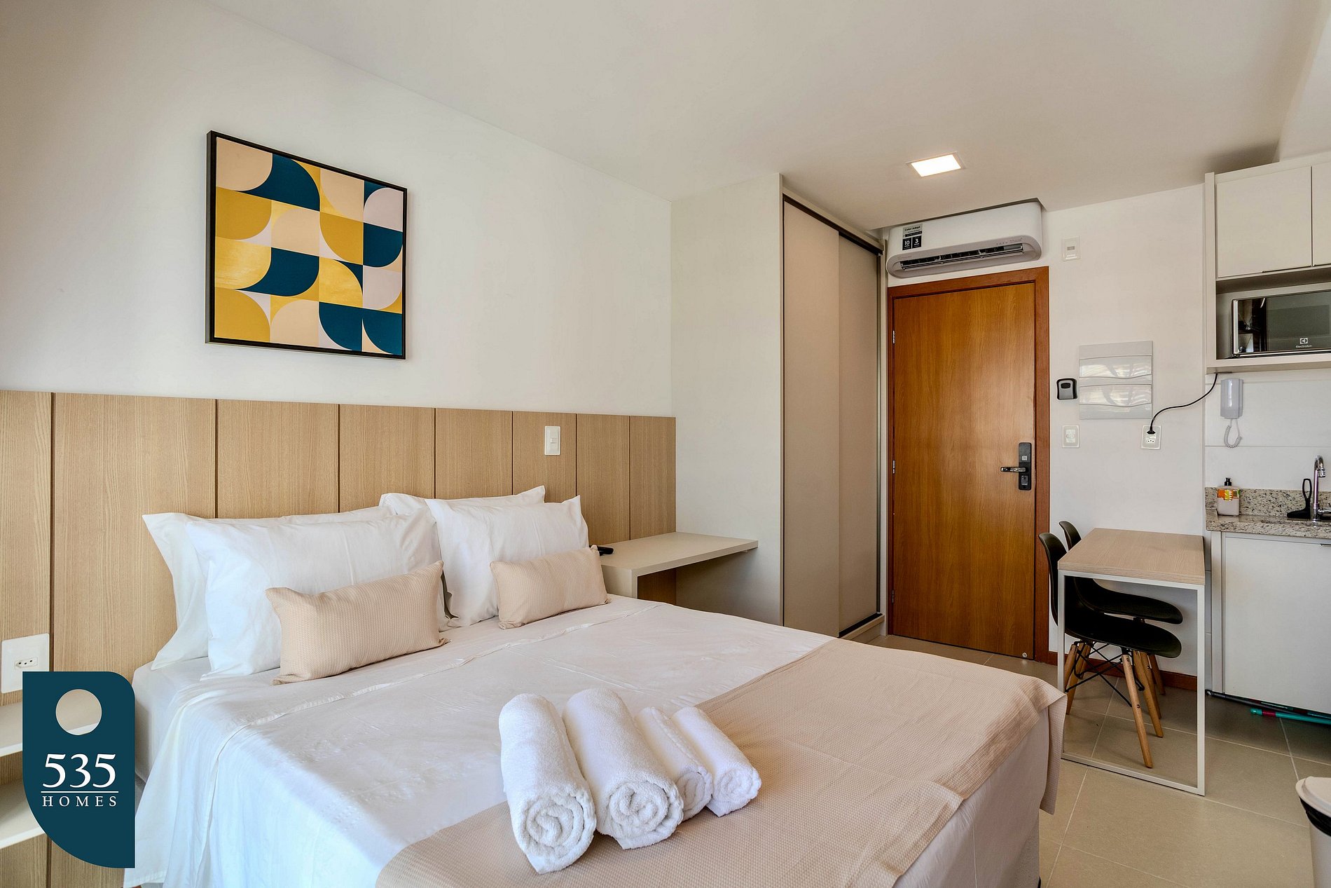 Situado no 11º andar, o imóvel oferece uma experiência no alto, com mais privacidade e uma atmosfera tranquila. É uma excelente opção para quem busca praticidade no dia a dia, seja para viagens a trabalho ou estadias mais longas, com tudo por perto e fácil deslocamento pela cidade.
