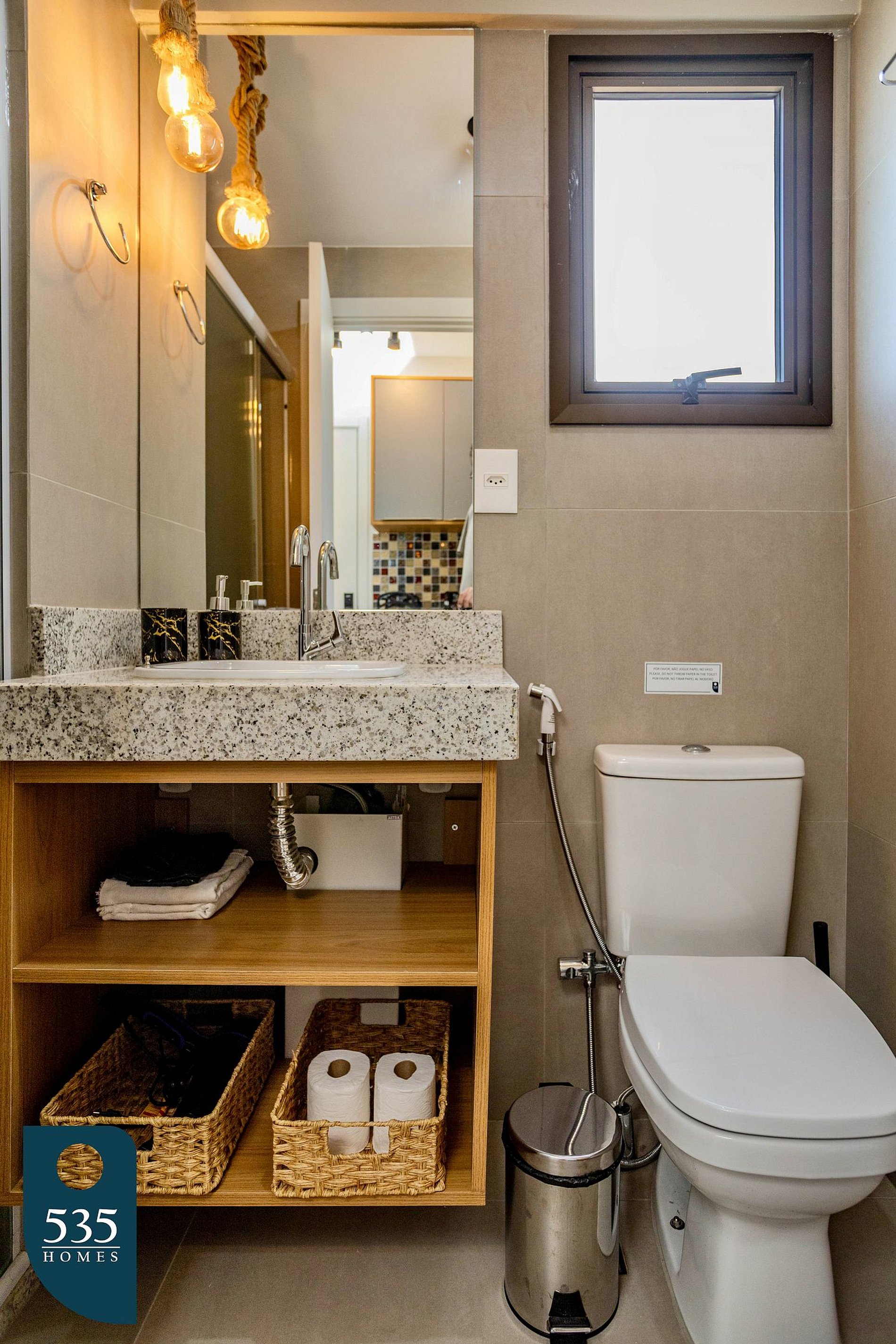 O banheiro dispõe de secador de cabelo, chuveiro elétrico e janela, proporcionando boa ventilação.