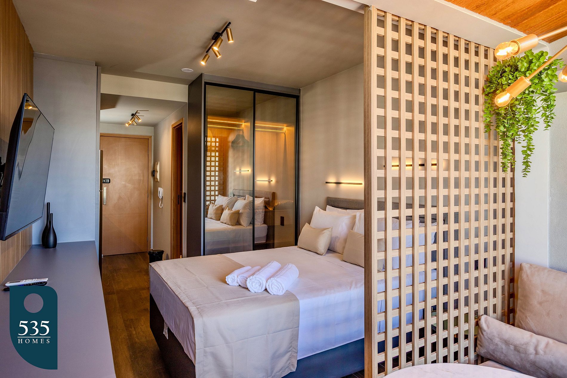 Na cobertura, os hóspedes encontram um lounge aconchegante e área gourmet equipada, também com acesso por reconhecimento facial, além de banheiro acessível para maior comodidade.