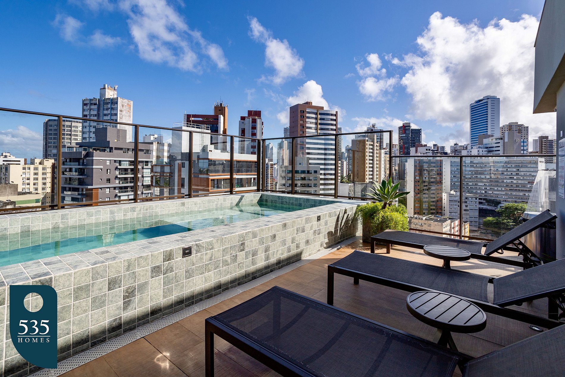 A piscina do condomínio conta com acessibilidade, pode ser utilizada livremente durante a estadia e costuma fechar às segundas-feiras para tratamento, mas pode ser fechada pela administração do condomínio em outros dias da semana pra manutenção. A academia localizada no mezanino também conta com acesso por reconhecimento facial. No mesmo andar, há lavanderia compartilhada com pagamento direto em máquina de cartão de crédito.