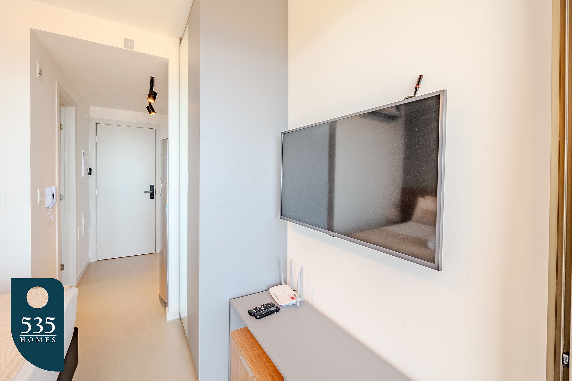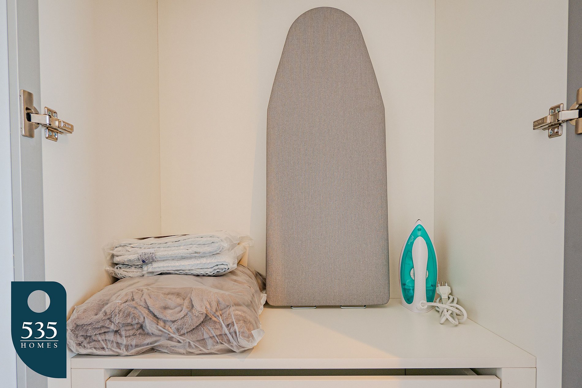 Para maior comodidade durante a estadia, há também varal de roupas. O banheiro dispõe de chuveiro elétrico, exaustor e secador de cabelo. No quarto, os hóspedes encontram ar-condicionado, smart TV de 42", cortina com blackout, espelho de corpo inteiro, além de tábua para passar roupa e ferro elétrico, garantindo conforto e funcionalidade.