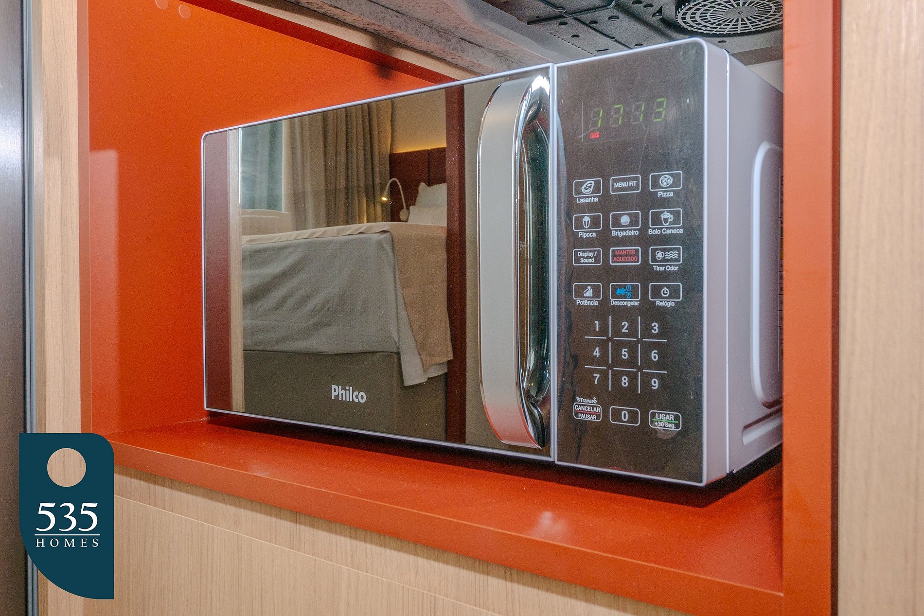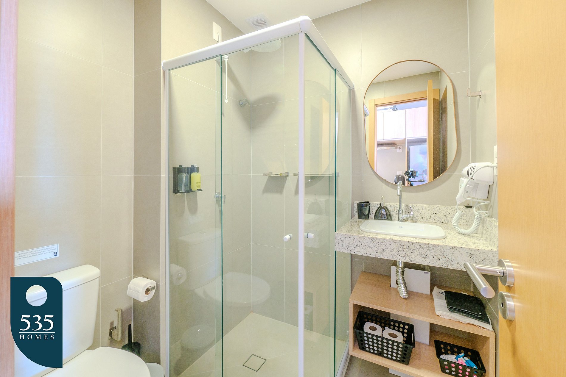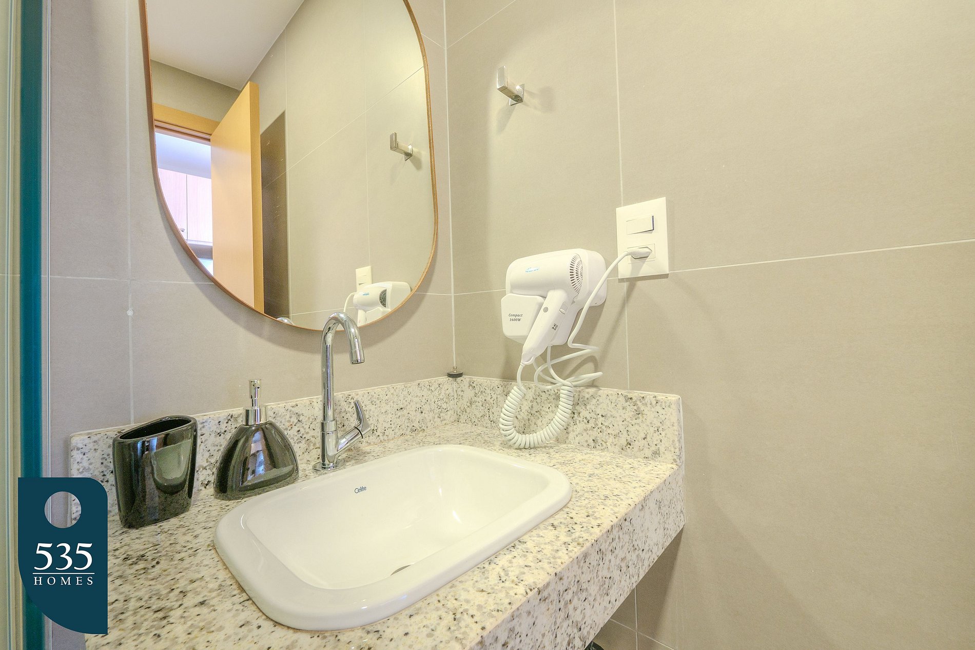 O apartamento conta com uma entrada equipada com espelho de corpo inteiro e uma cozinha funcional com geladeira, cooktop de indução de duas bocas, depurador de ar, sanduicheira, liquidificador, cafeteira italiana, máquina de café e jogo de panelas, oferecendo praticidade no preparo das refeições. Para maior comodidade durante a estadia, há varal de roupas, mesa de passar e ferro elétrico. O banheiro dispõe de chuveiro elétrico, exaustor, ducha higiênica e secador de cabelo. No quarto, os hóspedes encontram ar-condicionado, estação de trabalho, smart TV de 50" e cortinas com blackout, garantindo conforto tanto para descanso quanto para trabalho remoto. A varanda é mobiliada com mesa e cadeiras, ideal para momentos de relaxamento.