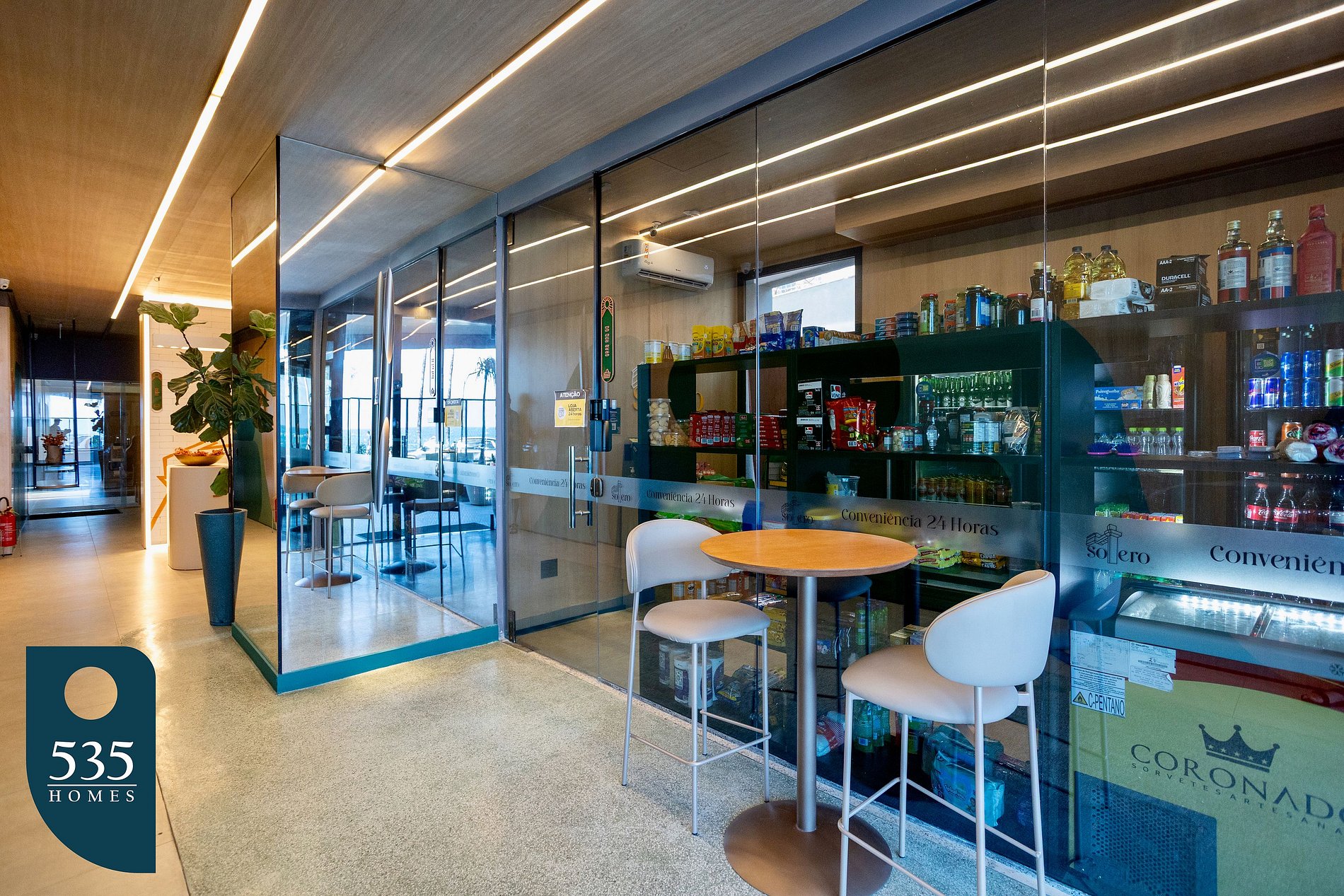 O prédio possui um café, o Seven Wonders Café, que funciona todos os dias para facilitar que refeições rápidas sejam feitas com conforto e comodidade.