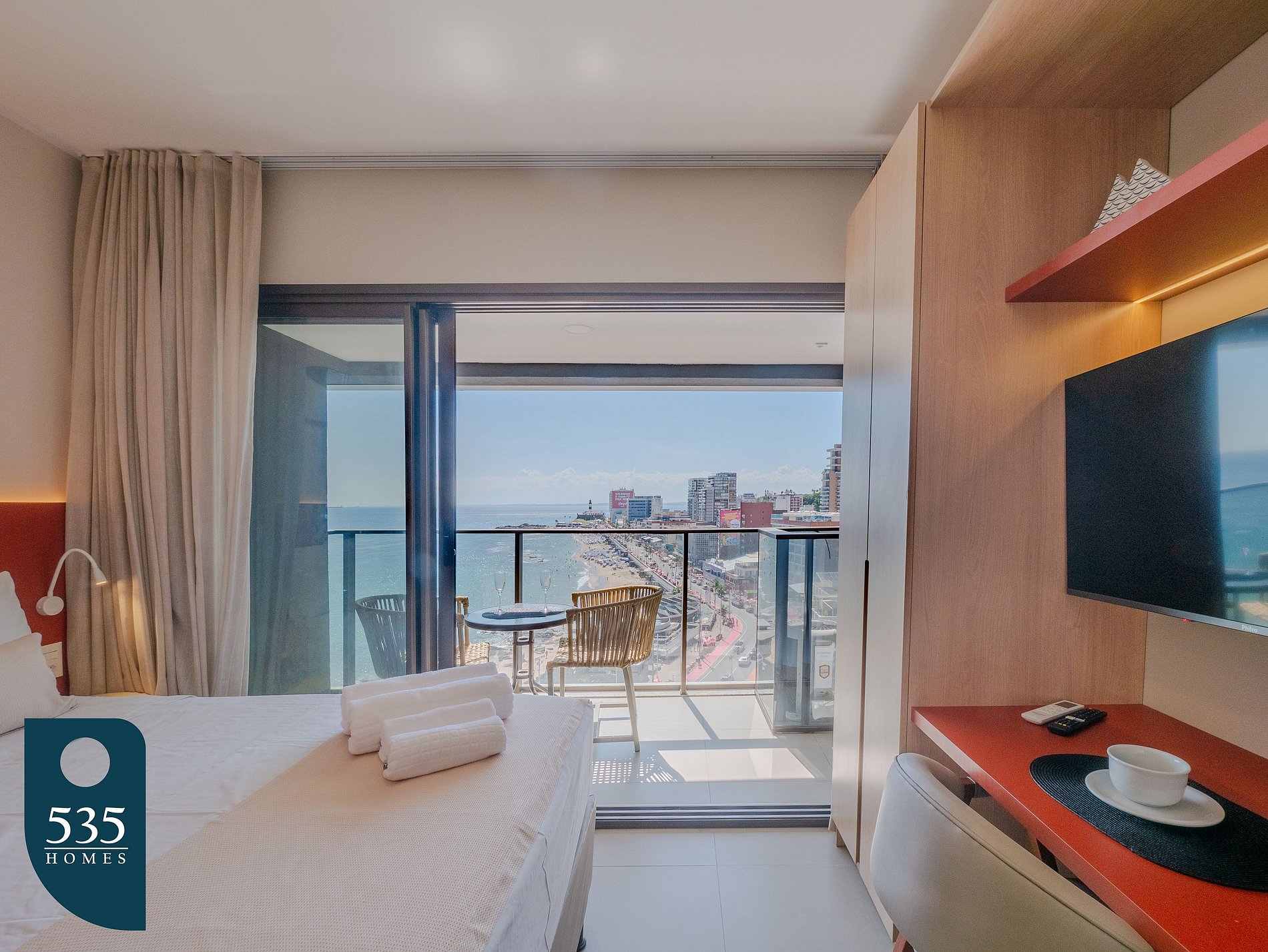 Desperte na Barra com vista ampla para a praia