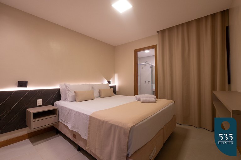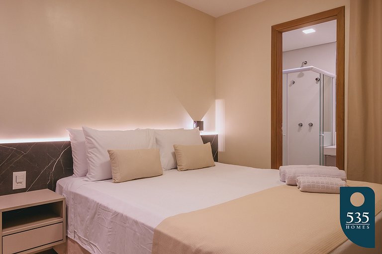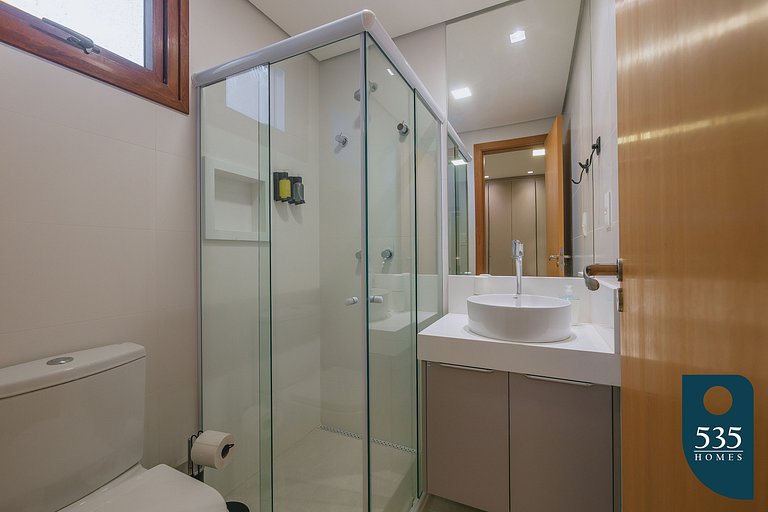 Nosso apartamento oferece o máximo em conforto e conveniência para sua estadia. Com ar condicionado em todos os três quartos, você poderá desfrutar de noites tranquilas de sono em uma cama Queen em cada suíte e nas duas camas de solteiro no quarto duplo, independentemente da temperatura lá fora. A cozinha está totalmente equipada com uma geladeira espaçosa, Cooktop de 5 bocas, forno, liquidificador, sanduicheira, forninho elétrico e utensílios completos, proporcionando a liberdade de preparar suas refeições favoritas.