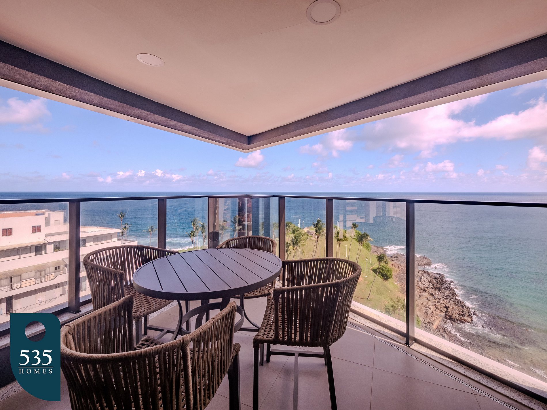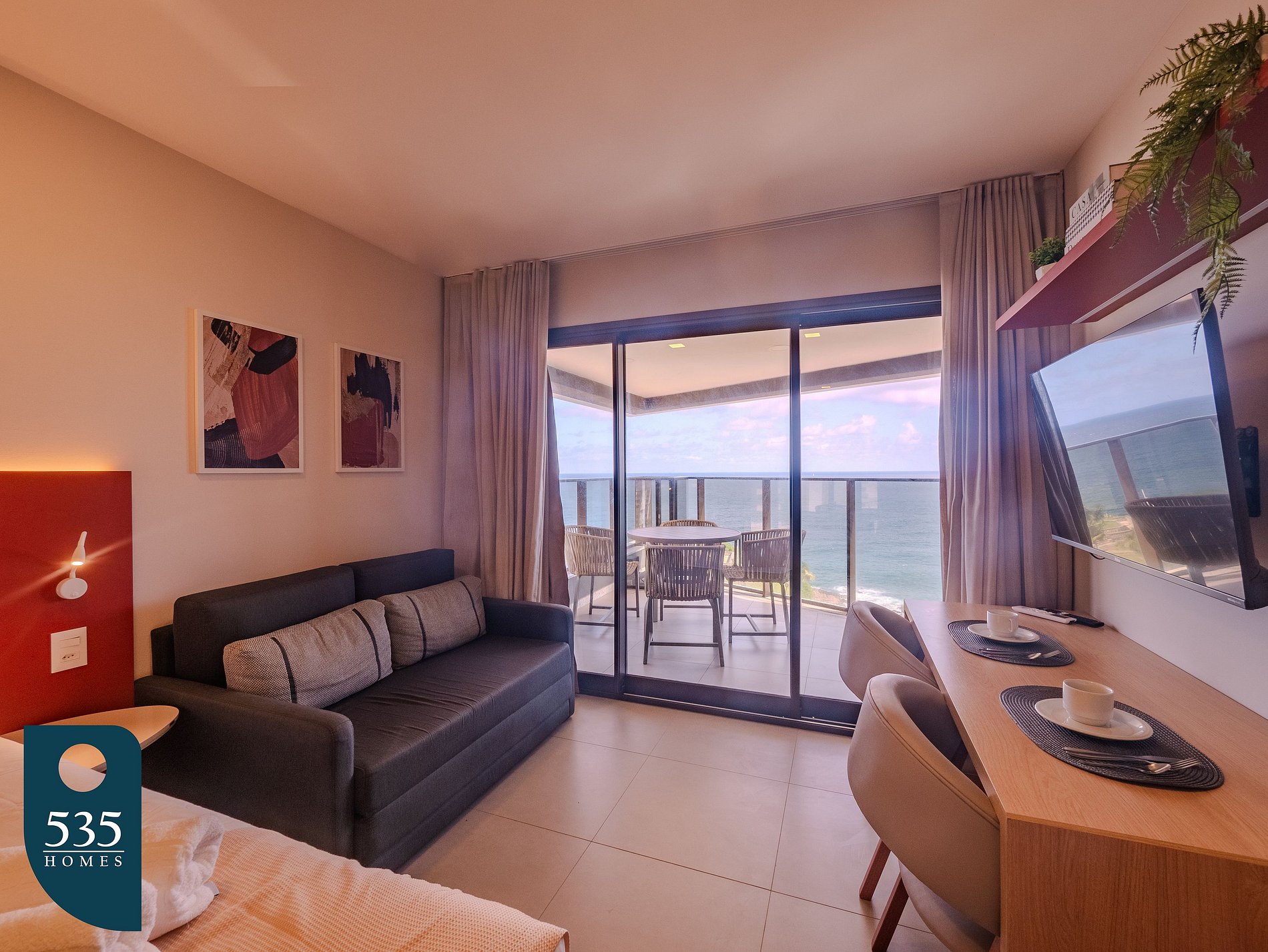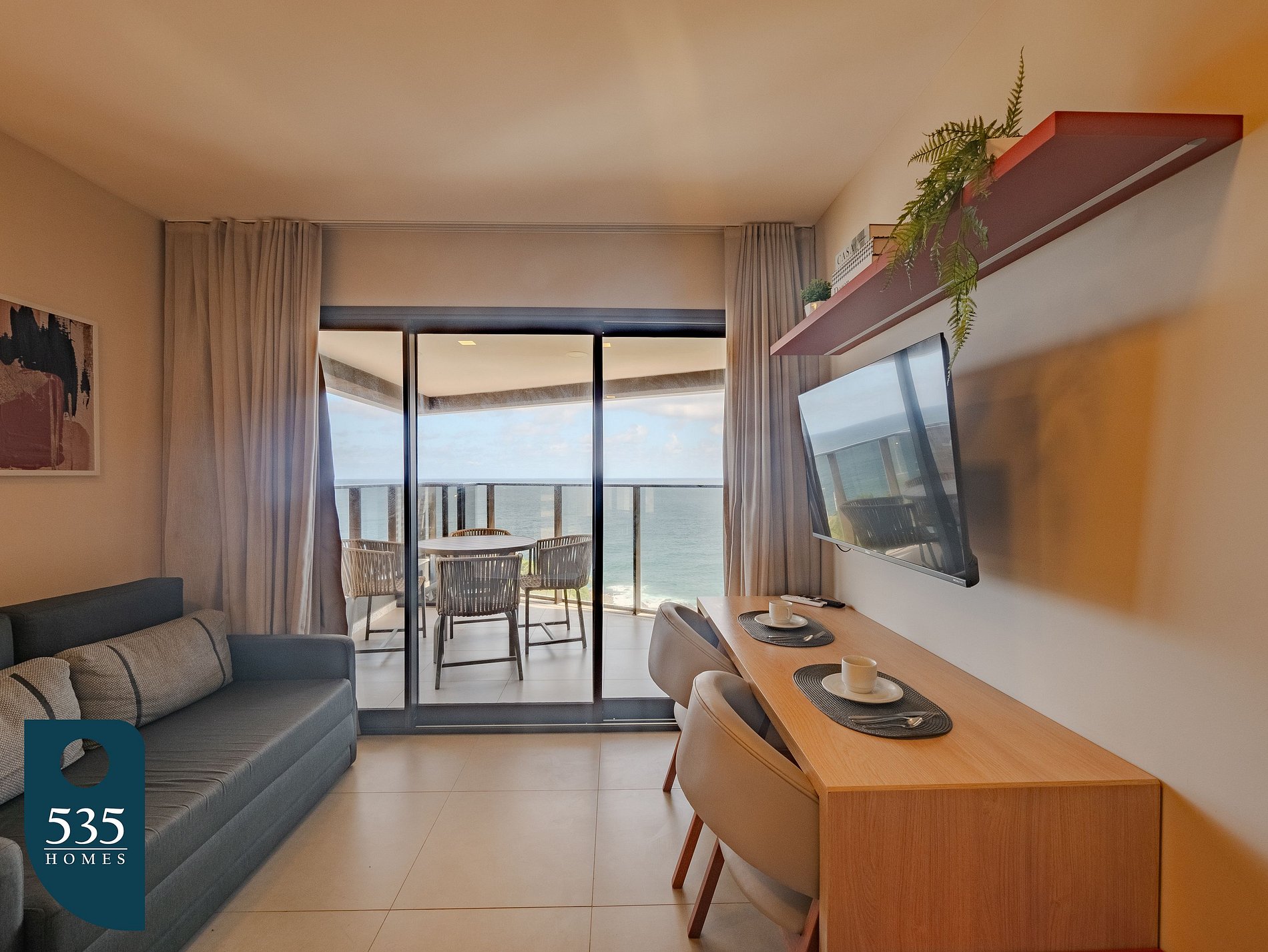 Este apartamento por temporada está localizado no bairro da Barra, em Salvador, no 10º andar, com vista para o mar e para o Morro do Cristo, um dos cenários mais emblemáticos da orla. A posição elevada proporciona uma vista aberta da paisagem, acompanhando o movimento do mar e da orla ao longo do dia.