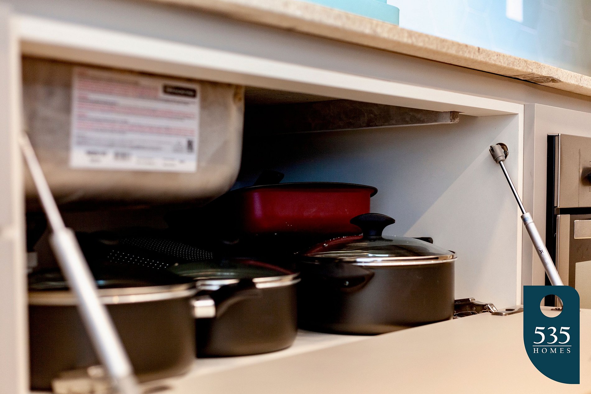 Cozinha completa com Geladeira inverse 3 portas, forno, cooktop 4 bocas, máquina de lavar, microondas e liquidificador.