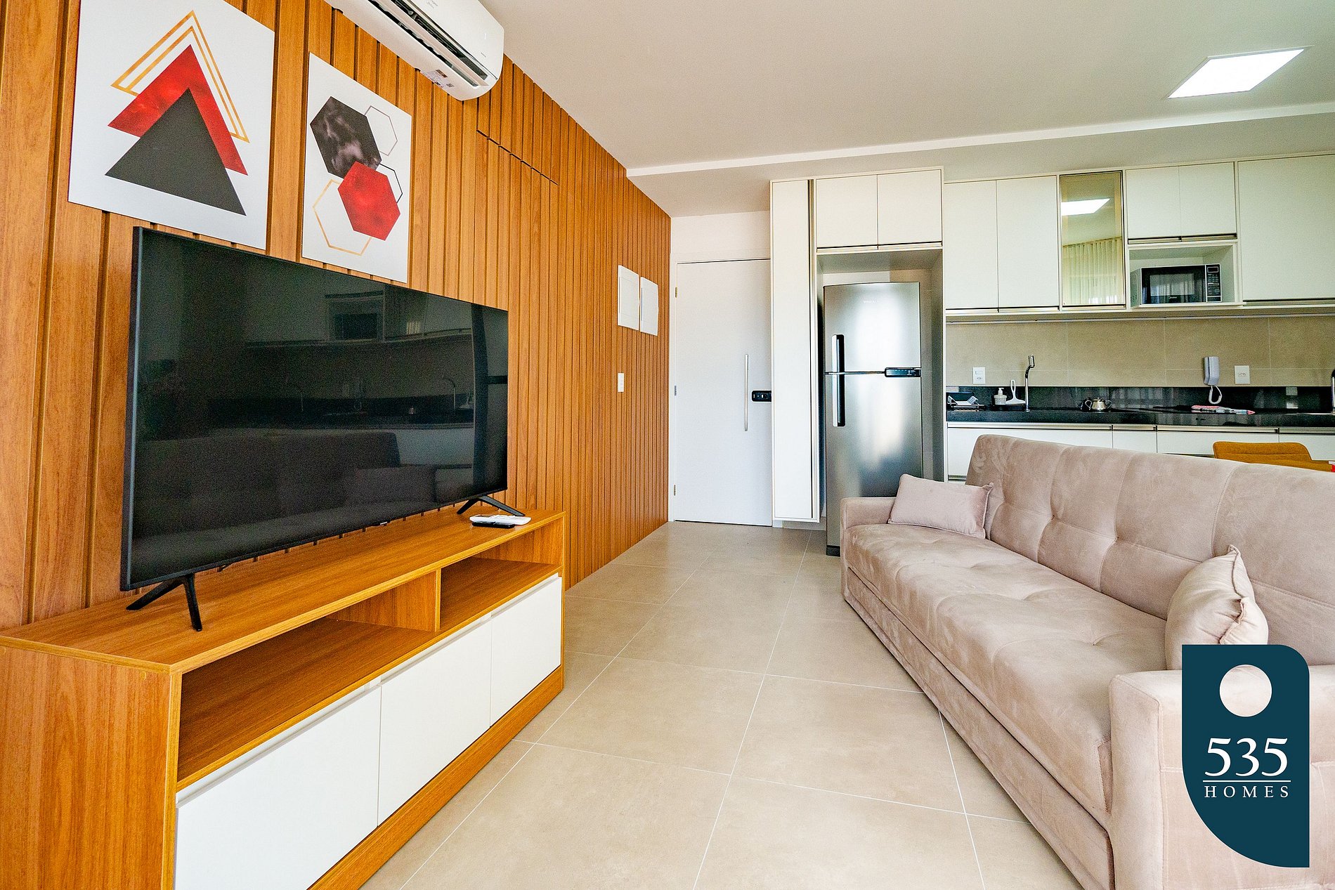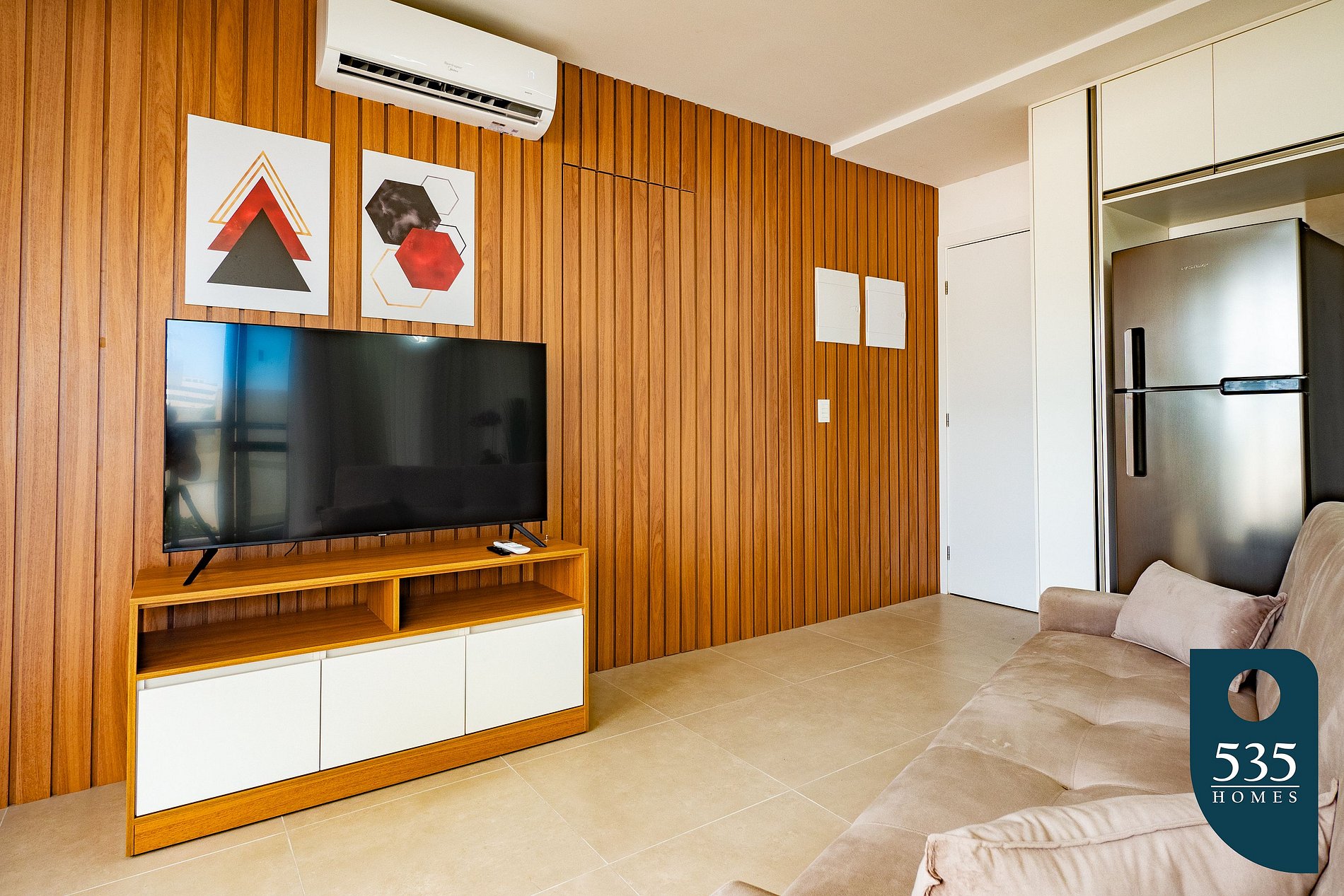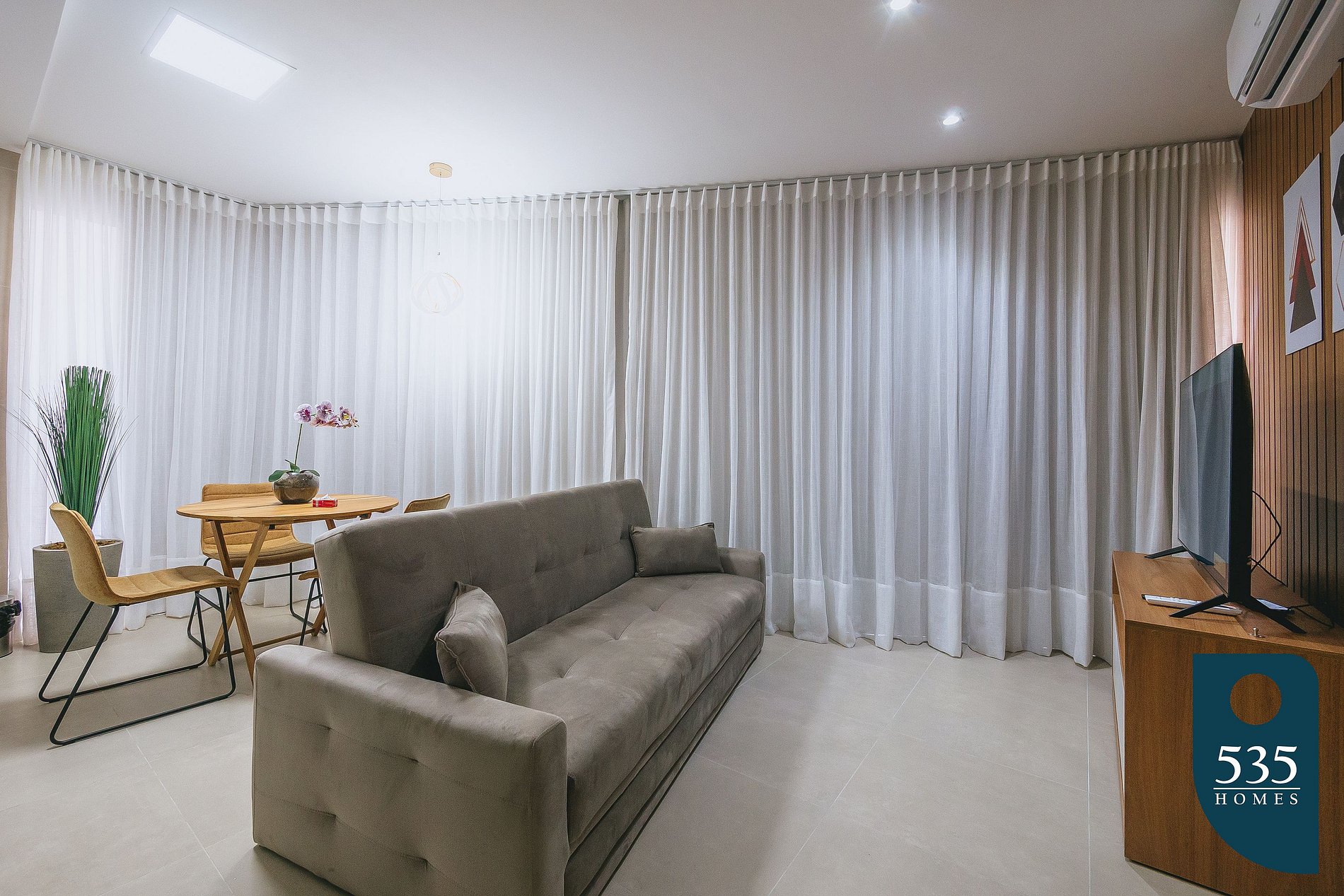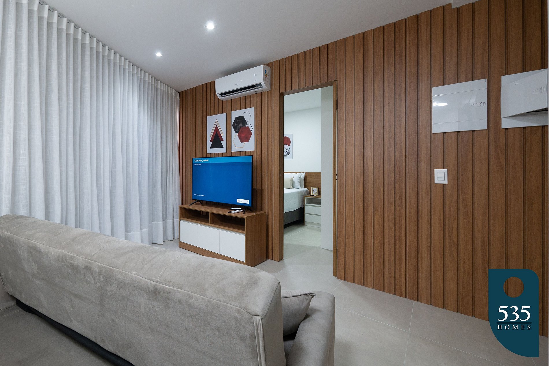 Ar Condicionado na Sala e no Quarto, proporcionando um ambiente agradável e fresco, seja na sala de estar ou no conforto do quarto.