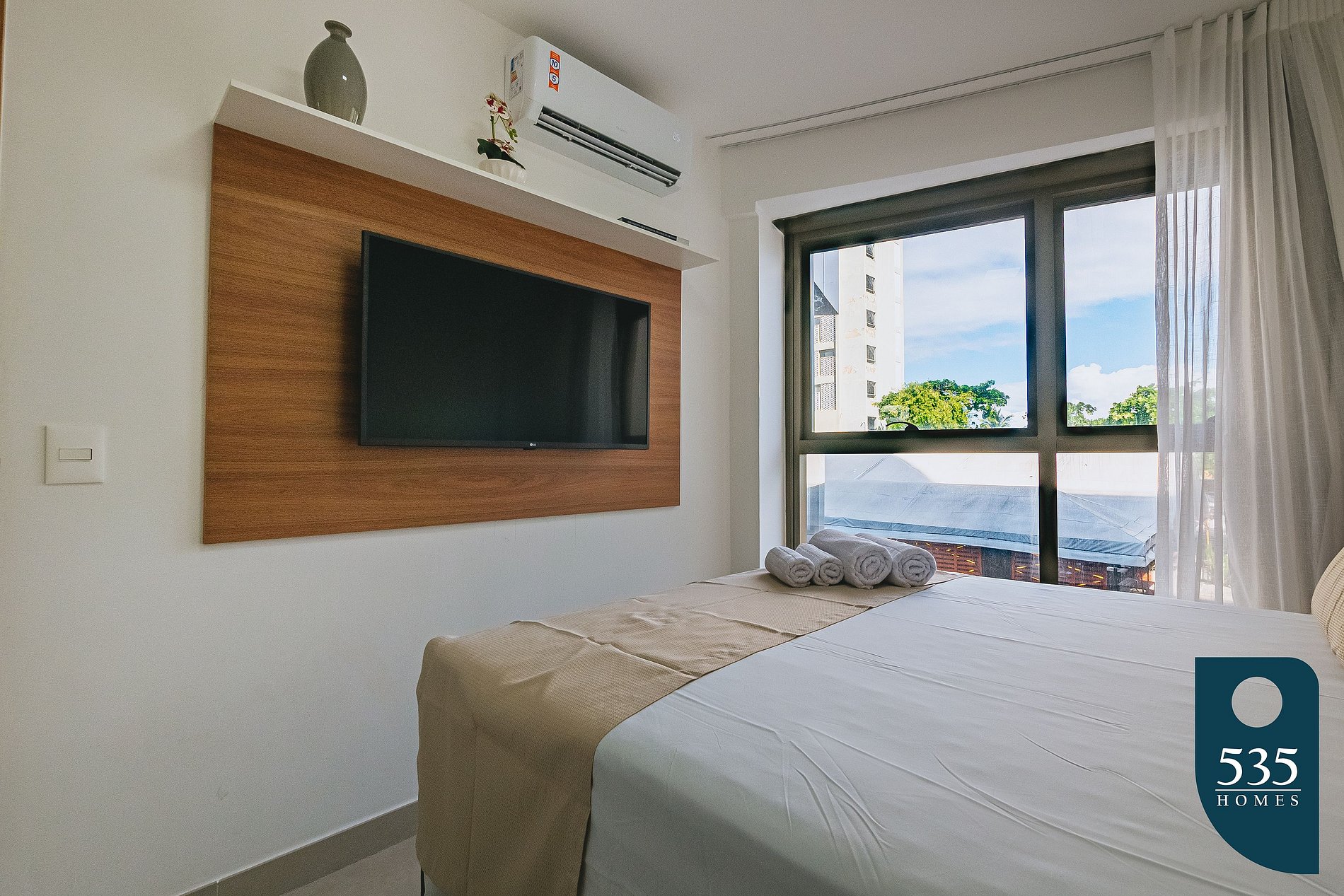 Ideal para férias inesquecíveis, conta com uma decoração sofisticada e acesso a uma estrutura completa com piscina, academia e muito mais. Venha viver momentos únicos em Salvador. Reserve já!