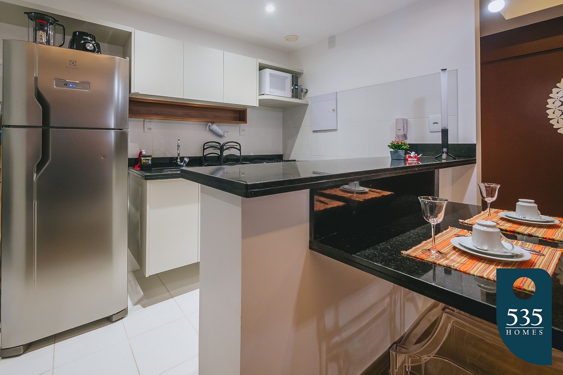 A cozinha é totalmente equipada com geladeira, fogão, itens completos de cozinha, liquidificador, sanduicheira e uma cafeteira italiana, permitindo que você prepare suas refeições favoritas com facilidade. Para seu entretenimento, há uma smart TV de 32''.
