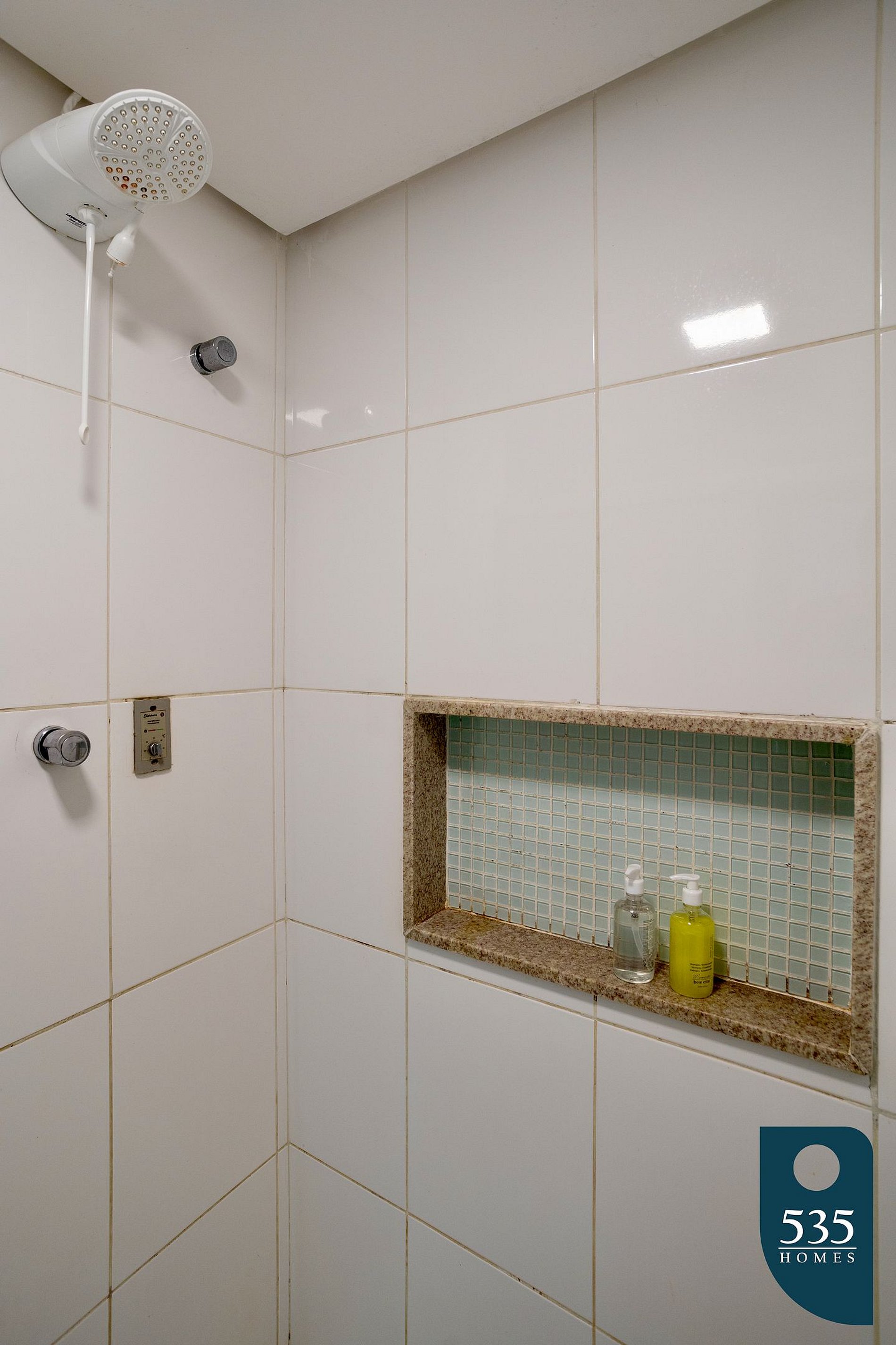 O apartamento contém uma cama queen e um sofá-cama de casal que acomoda duas pessoas. Ao entrar, você encontrará uma sala de estar climatizada com ar condicionado e uma Smart TV de 55" para seu entretenimento. No quarto, além do ar-condicionado, você encontrará uma televisão de 32" para seus momentos de lazer.