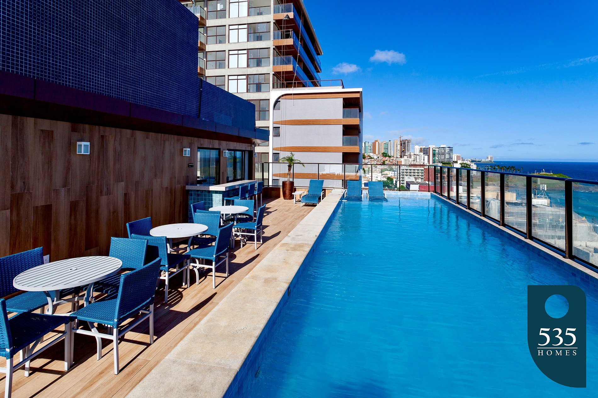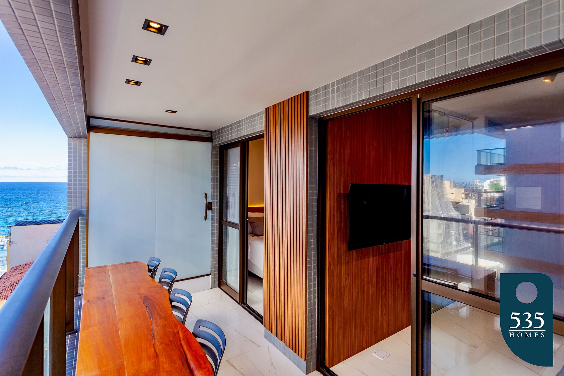 Desfrute da vista lateral do mar a partir da nossa varanda e esteja a poucos passos da icônica praia do Farol da Barra.