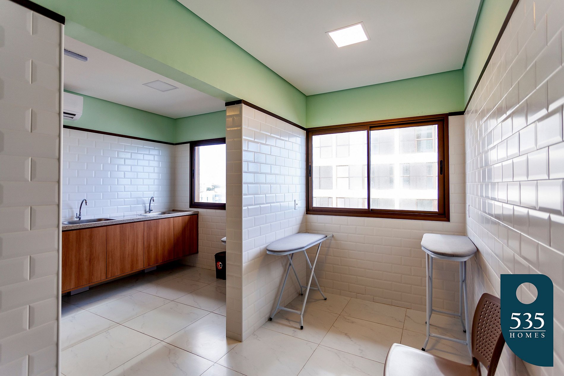 Condomínio também disponibiliza área de serviços com lavadoras lava e seca (custo a parte).
