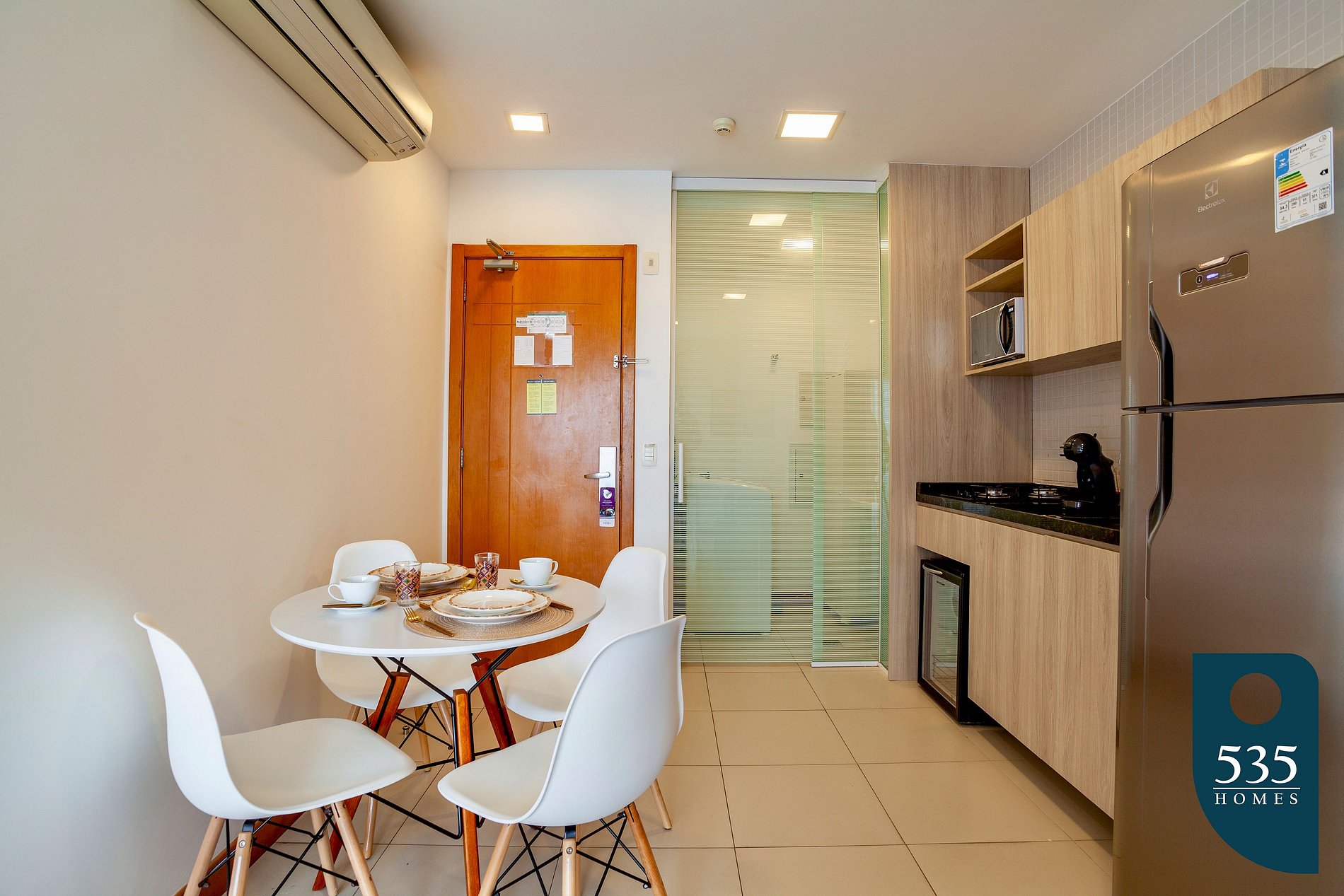 O apartamento é no hotel Mercure com infra-estrutura completa e extremamente bem localizado, com muitas opções de restaurantes e todas as comodidades para quem esta a negocios e a lazer em Salvador. Alem de bem cuidado o apartamento correspondia exatamente como nas fotos do anuncio. O atendimento da Mariana e da equipe da 525 Homes é com concerteza o diferencial desta locação.