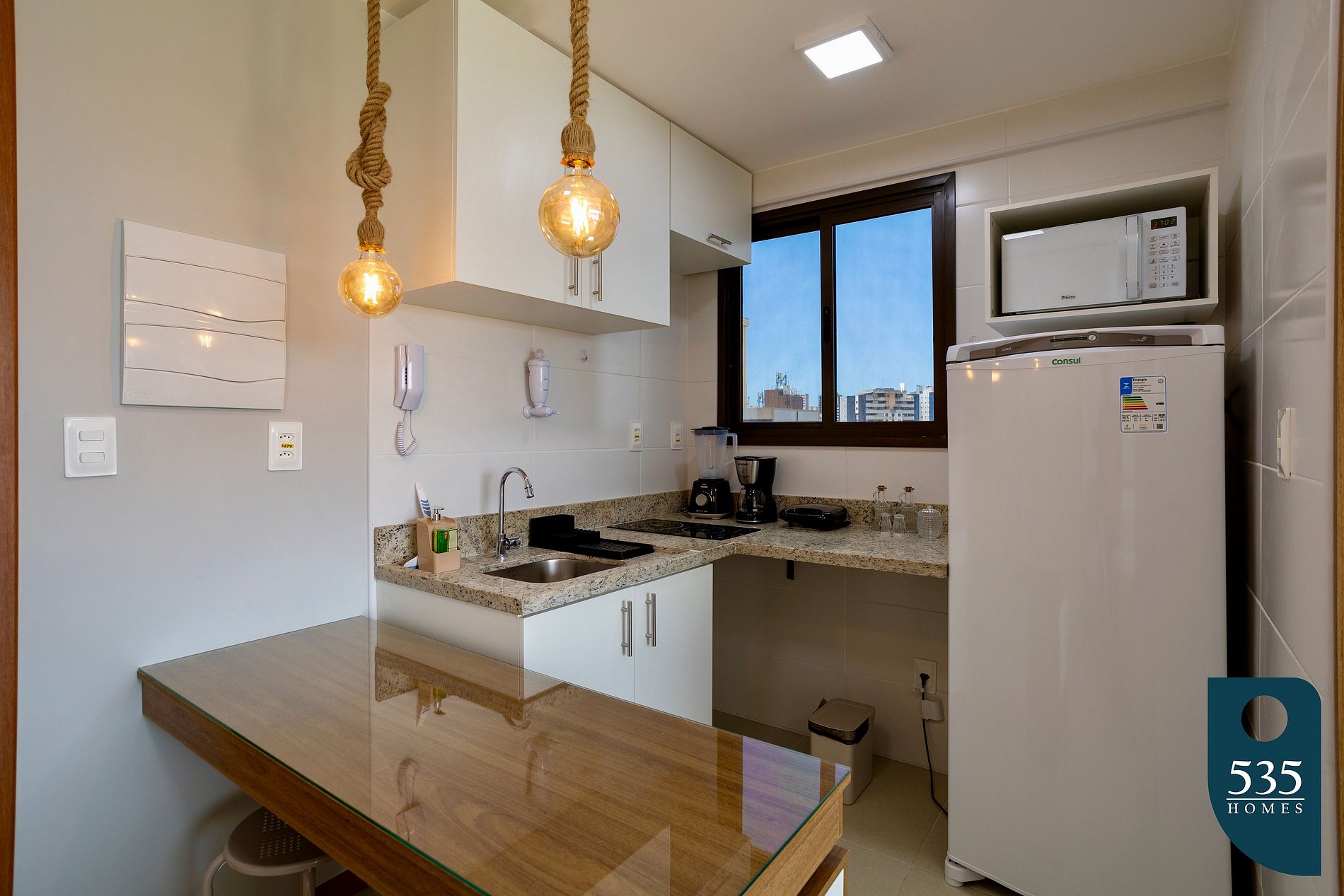 O apartamento foi pensado para oferecer uma experiência confortável e funcional. A sala conta com uma Smart TV de 39” e Wi-Fi de alta velocidade, ideal tanto para entretenimento quanto para quem precisa trabalhar remotamente. O ar-condicionado mantém o ambiente sempre agradável. A cozinha é totalmente equipada, com geladeira, cooktop de 2 bocas, micro-ondas, liquidificador, sanduicheira e filtro de água, oferecendo diversos utensílios domésticos para que você possa preparar refeições. Além disso, itens como secador de cabelo, ferro de passar e uma mesa portátil para roupas estão disponíveis para garantir ainda mais conveniência durante sua estadia.