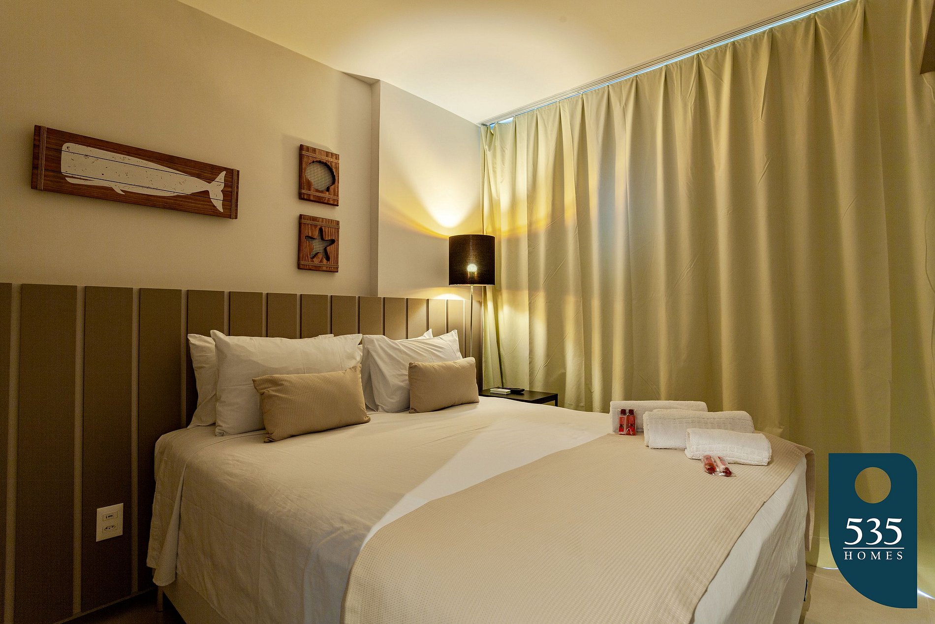 O apartamento possui uma confortável cama queen-size e um sofá-cama que pode acomodar dois hóspedes adicionais. O quarto está equipado com uma Smart TV com acesso a serviços populares de streaming como YouTube e Netflix. A sala também possui uma Smart TV, para que você possa curtir seus programas favoritos no conforto do sofá.