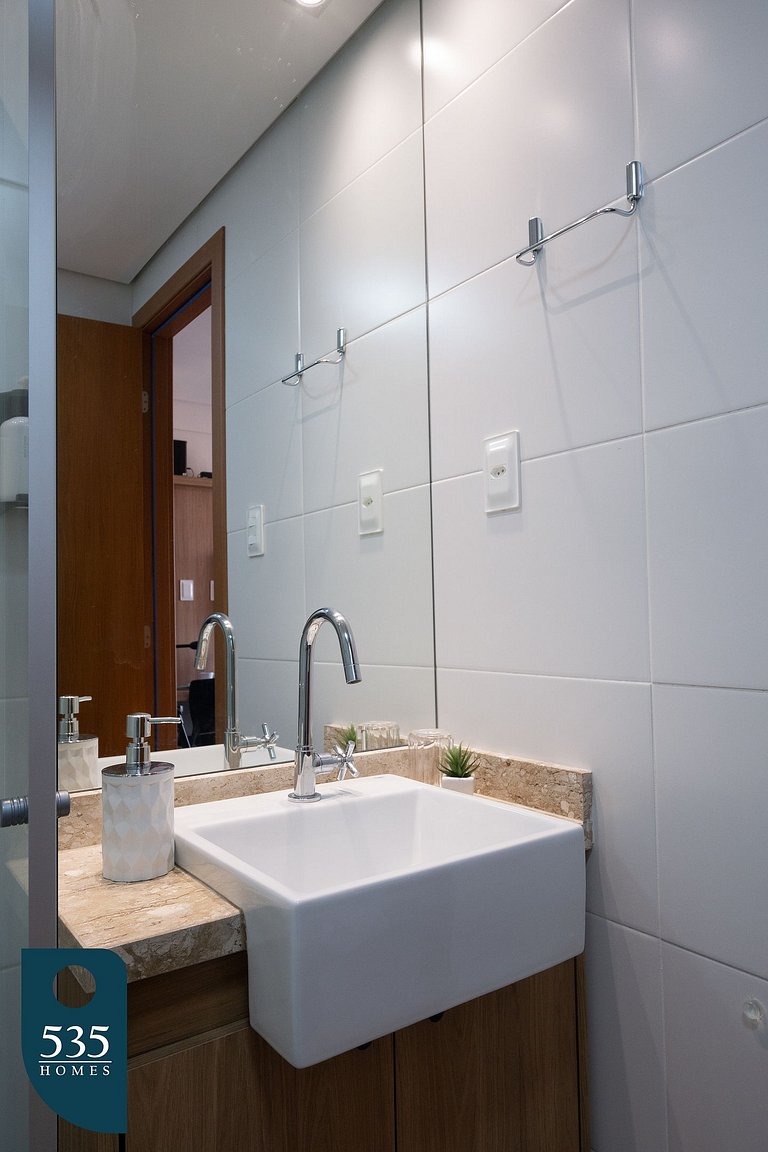 Além disso, o banheiro está equipado com um exaustor silencioso, proporcionando maior conforto e bem-estar.