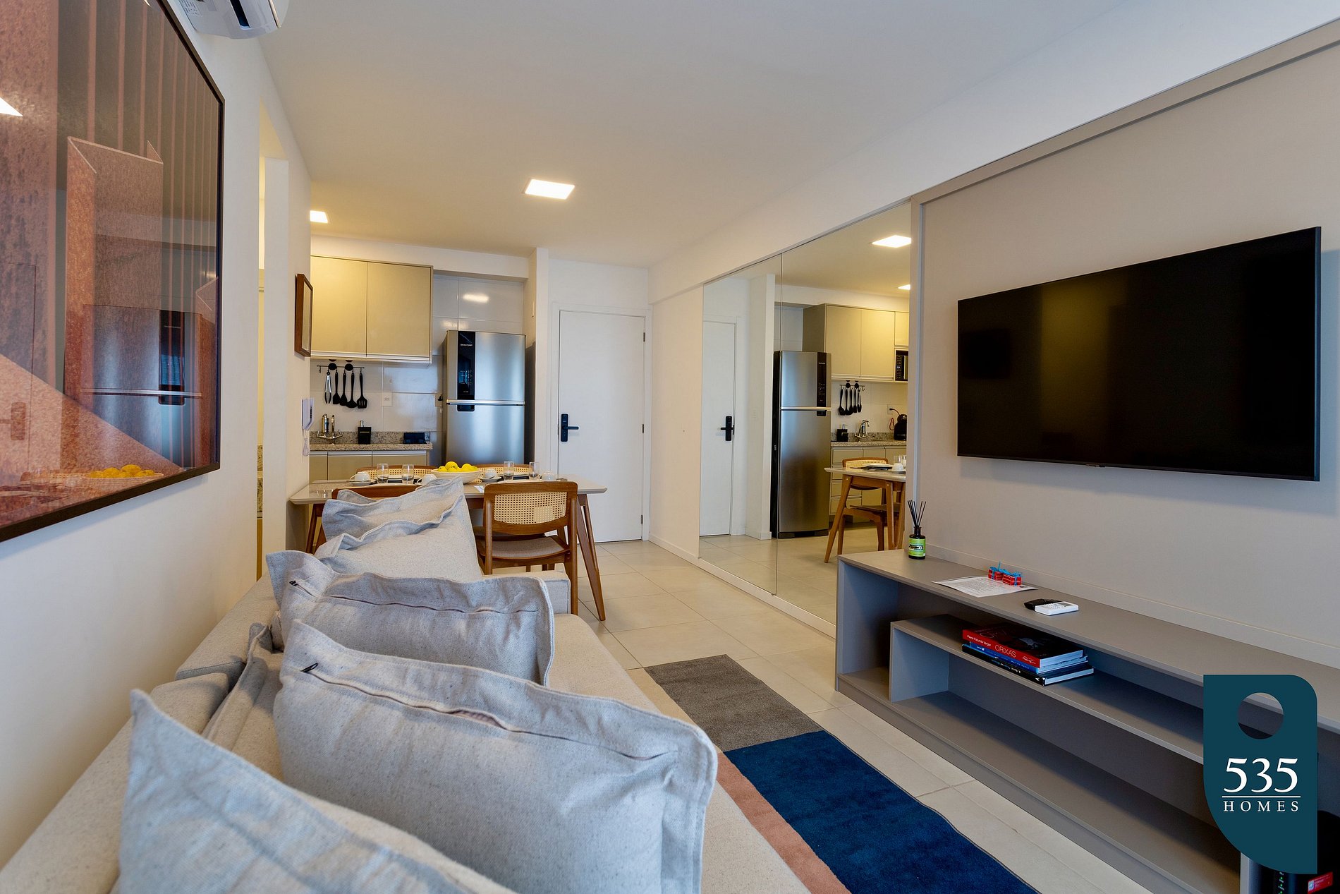 No apartamento, você encontrará uma TV LED Smart de 55" na sala e outra TV LED Smart de 50" no quarto, para momentos de entretenimento. A lavadora de roupas lava e seca está disponível para uso dos hóspedes, tornando sua estadia ainda mais conveniente.