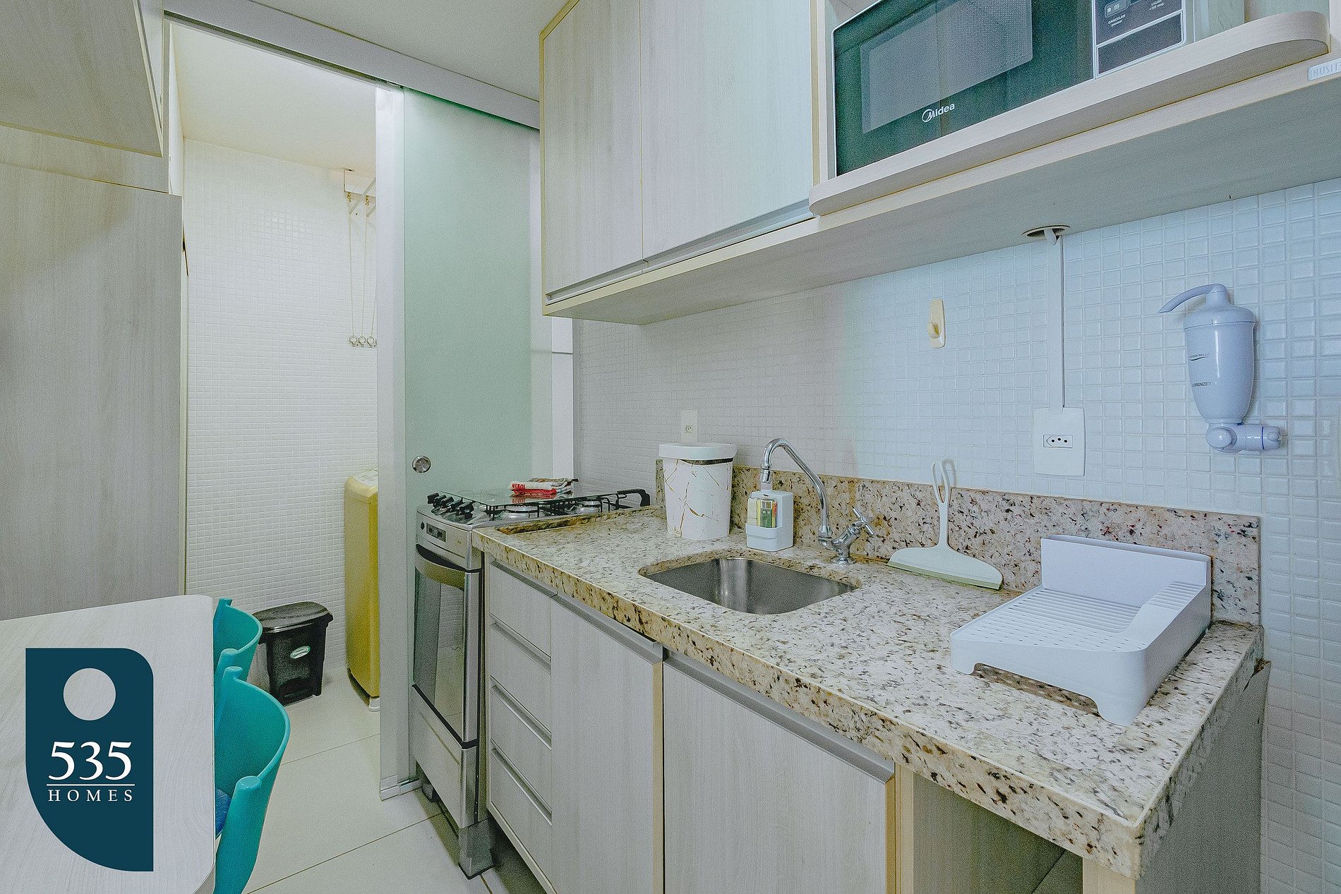 Este apartamento foi pensado para oferecer todo o conforto e praticidade que você merece durante sua estadia. Totalmente equipado, ele conta com uma cozinha completa que inclui liquidificador, sanduicheira, micro-ondas, fogão, forno, geladeira, espremedor elétrico de laranja e uma mesa de apoio com 2 cadeiras, ideal para refeições rápidas. Para momentos mais especiais, há também uma mesa de jantar com 4 lugares.