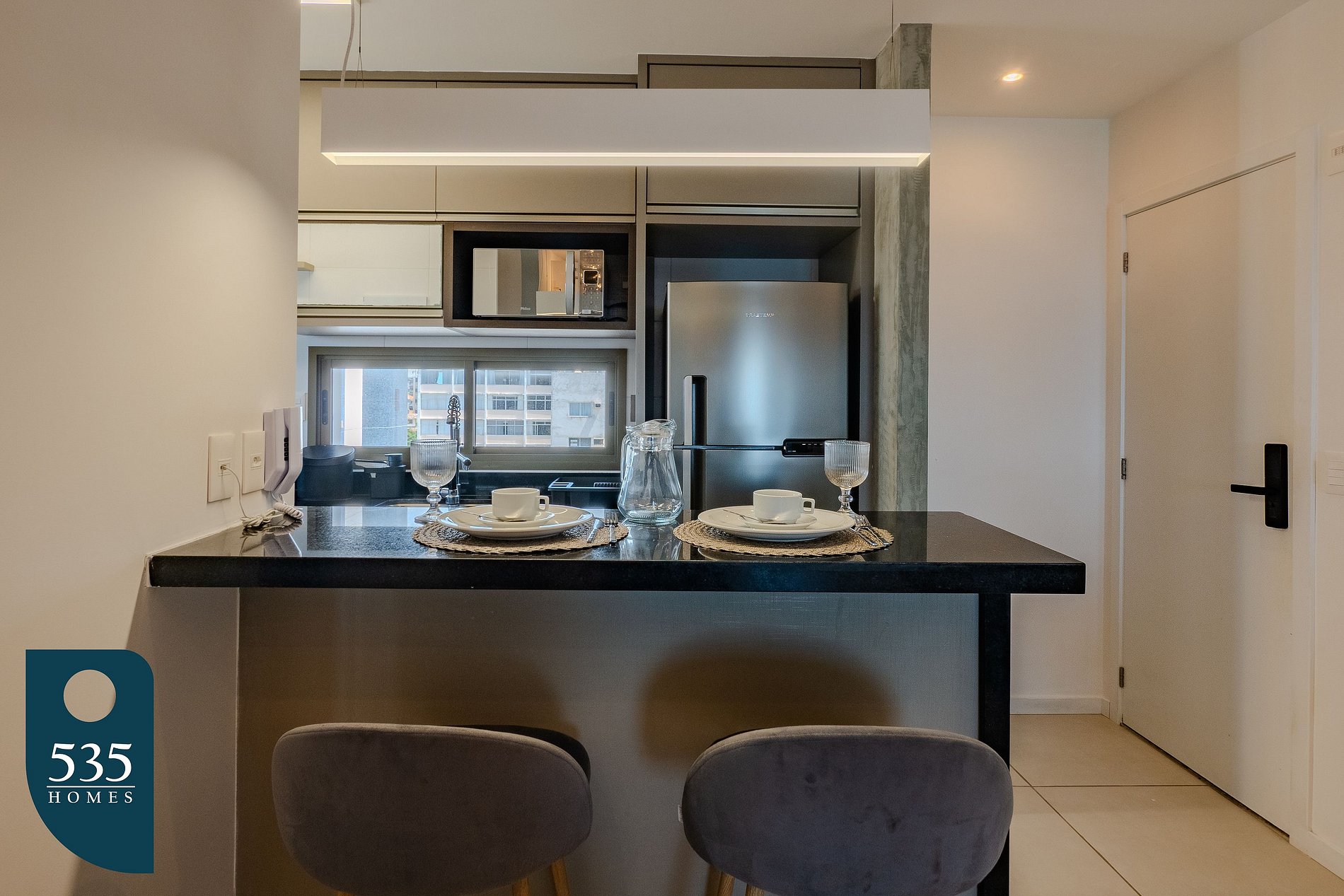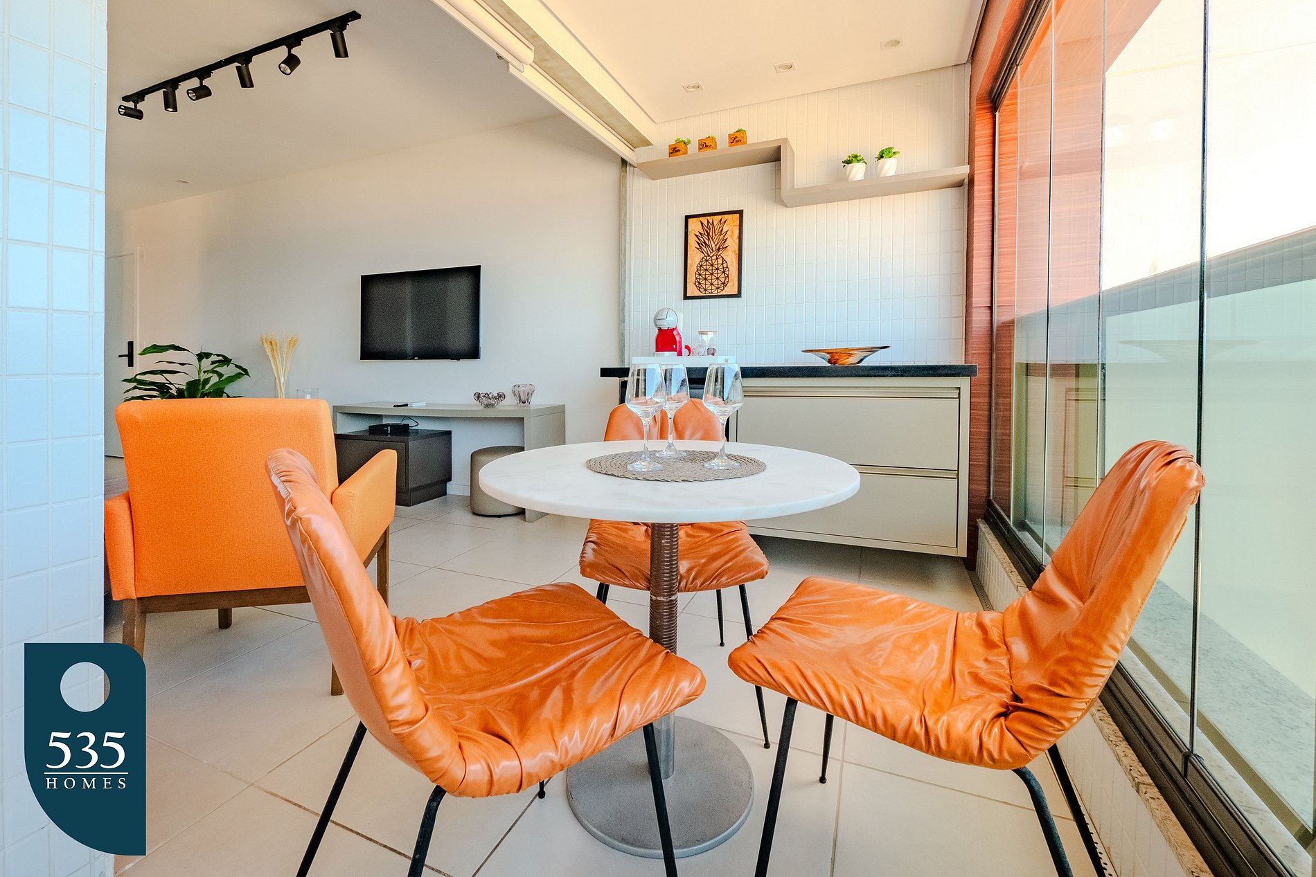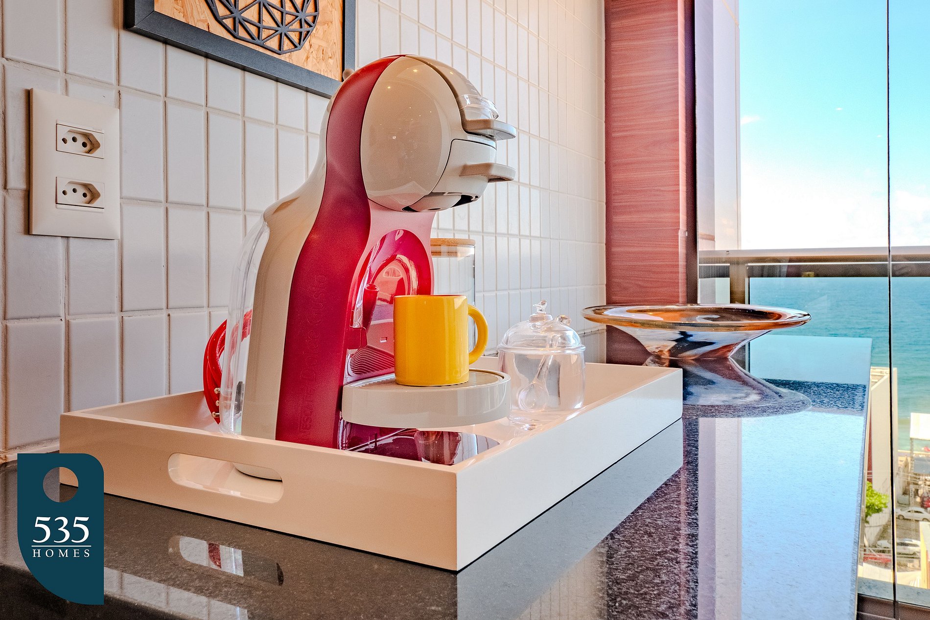 A sala de estar conta com uma Smart TV de 50", garantindo momentos de relaxamento, enquanto a cozinha dispõe de eletrodomésticos de qualidade, como micro-ondas, geladeira, forno e cooktop de indução de 04 bocas, além de um liquidificador, chaleira elétrica, sanduicheira e purificador de água, proporcionando todo o conforto necessário para preparar suas refeições. Para os apreciadores de café, há uma máquina de café em cápsulas disponível fora da cozinha, permitindo um delicioso começo de dia. O apartamento também oferece uma cervejeira, para manter suas bebidas sempre geladas. Para sua conveniência, há uma máquina de lavar, ferro de passar e tábua de passar roupa, além de um varal de roupa, permitindo que você cuide de suas roupas durante a estadia. Um aspirador de pó, ducha higiênica e secador de cabelo completam a estrutura do imóvel, garantindo que você tenha todo o conforto e praticidade no seu dia a dia.
