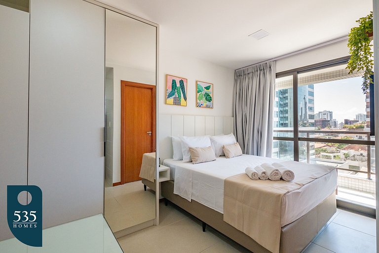 Na área de estar, desfrute de uma Smart TV de 43" para momentos de lazer e entretenimento. A cozinha é equipada com tudo o que você precisa para uma estadia confortável, incluindo um liquidificador, geladeira, sanduicheira, cooktop de indução com 02 bocas, purificador de água e muito mais. Além disso, você poderá apreciar um café fresquinho com a máquina de café ou a cafeteira italiana que está disponível para sua conveniência. Para os momentos de cuidados pessoais, o apartamento também conta com ferro, varal e mesa de passar roupa, secador de cabelo e até uma ducha higiênica, oferecendo total praticidade.
