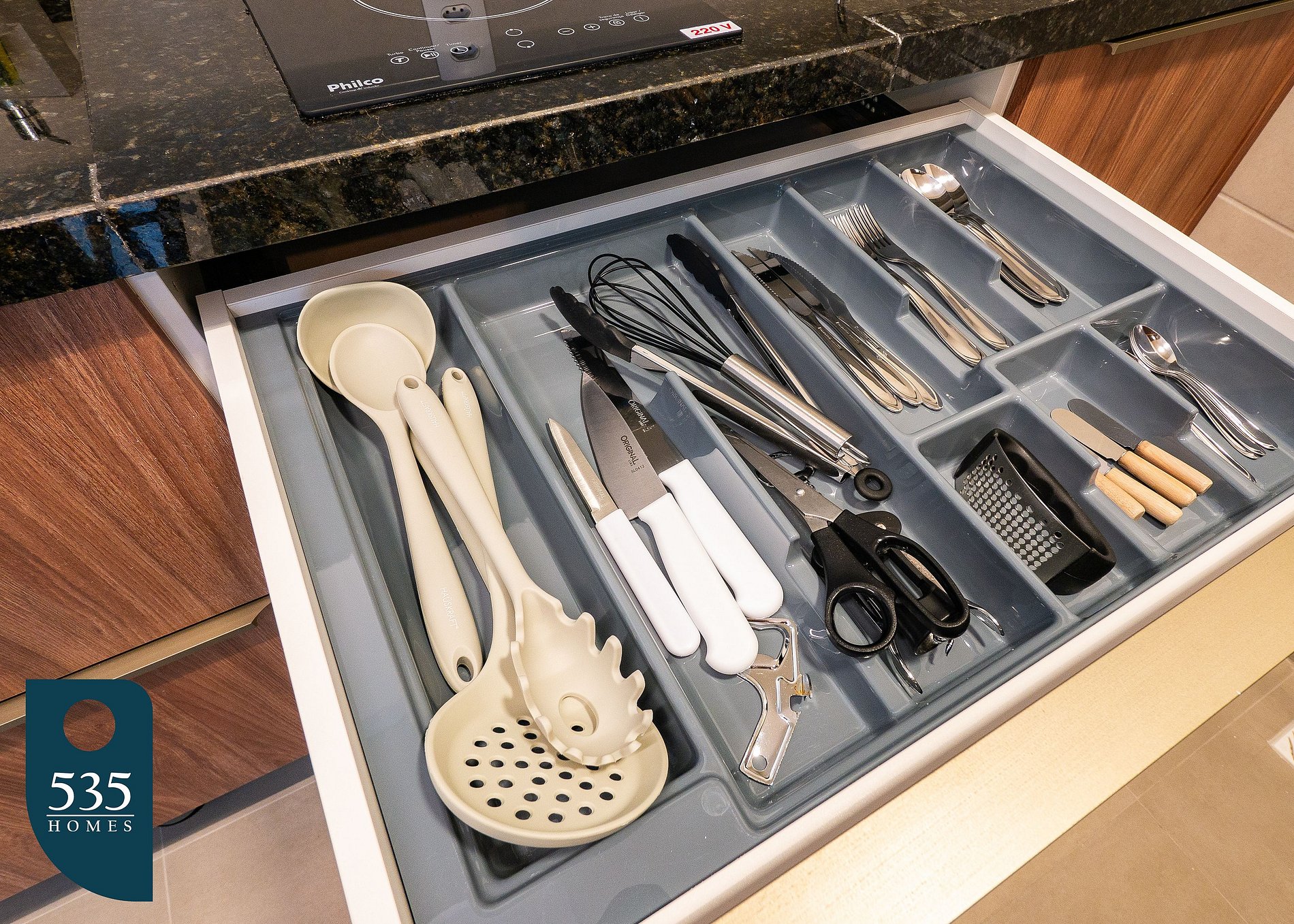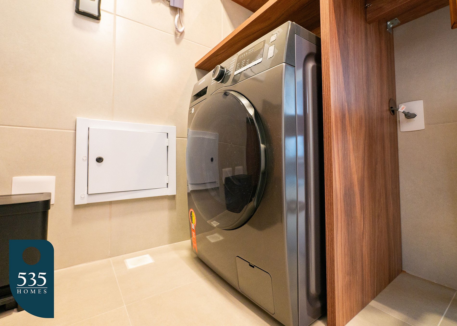 A cozinha é super equipada, com cooktop de 2 bocas, forno elétrico, micro-ondas, airfryer, sanduicheira, máquina de cápsula, cafeteira italiana e liquidificador. Também conta com geladeira, máquina de lavar roupa e purificador de água — tudo para trazer praticidade e bem-estar ao seu dia a dia.