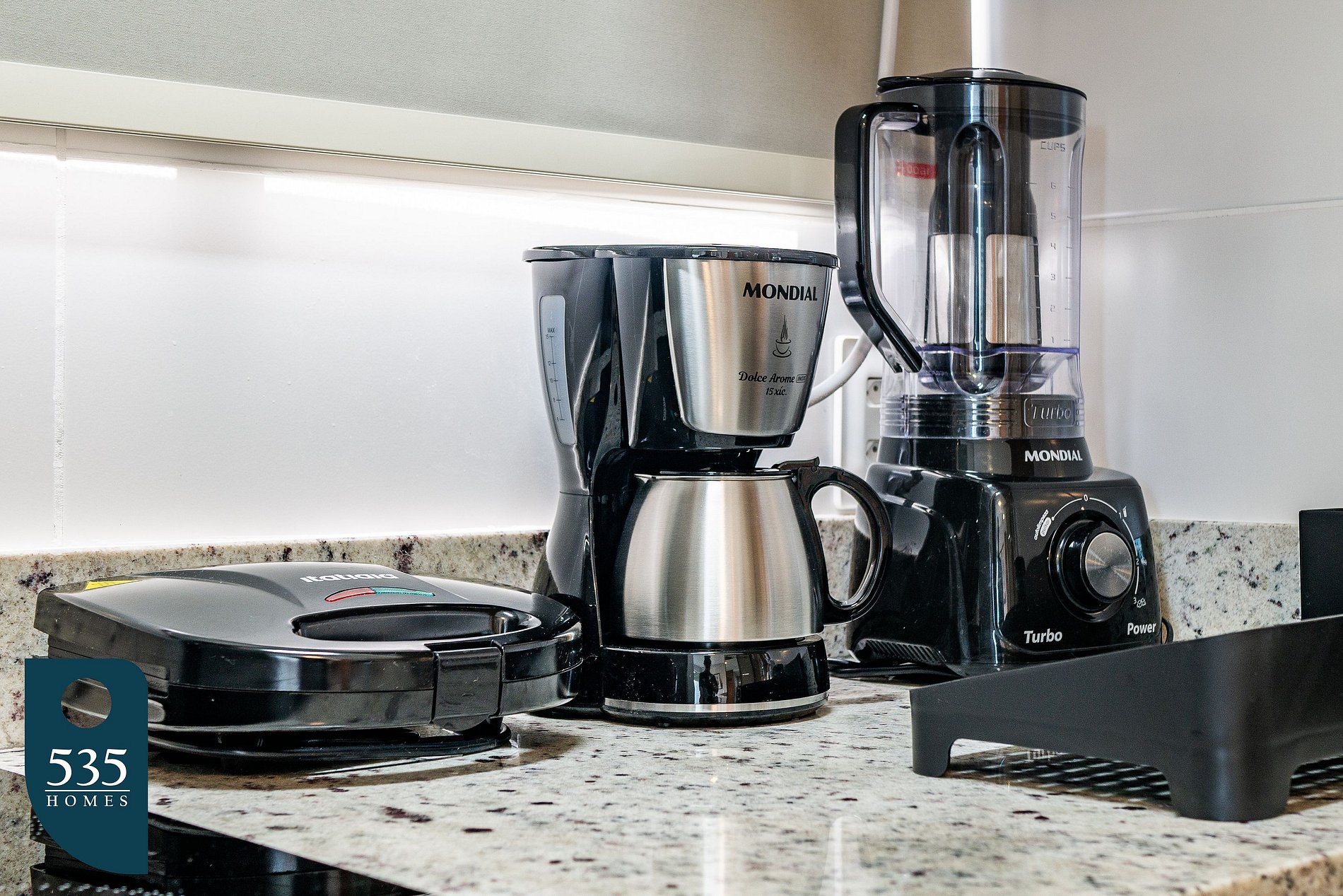 No quarto, você conta com internet de 500 megas, Smart TV de 32”, ar-condicionado e cortinas com blackout, garantindo conforto e privacidade. Há também cabides, tábua de passar roupa compacta e ferro de passar, trazendo praticidade para o dia a dia.A cozinha é moderna e funcional, equipada com cooktop de indução de 2 bocas, cafeteira elétrica, cafeteira italiana, micro-ondas, geladeira, sanduicheira, purificador de água, liquidificador e até taças de vinho para momentos especiais. O espaço inclui também varal de roupa, prendedores e balde, ideais para estadias mais longas.O banheiro é bem equipado com chuveiro elétrico, ducha higiênica e secador de cabelo, oferecendo o essencial para o seu conforto e praticidade.