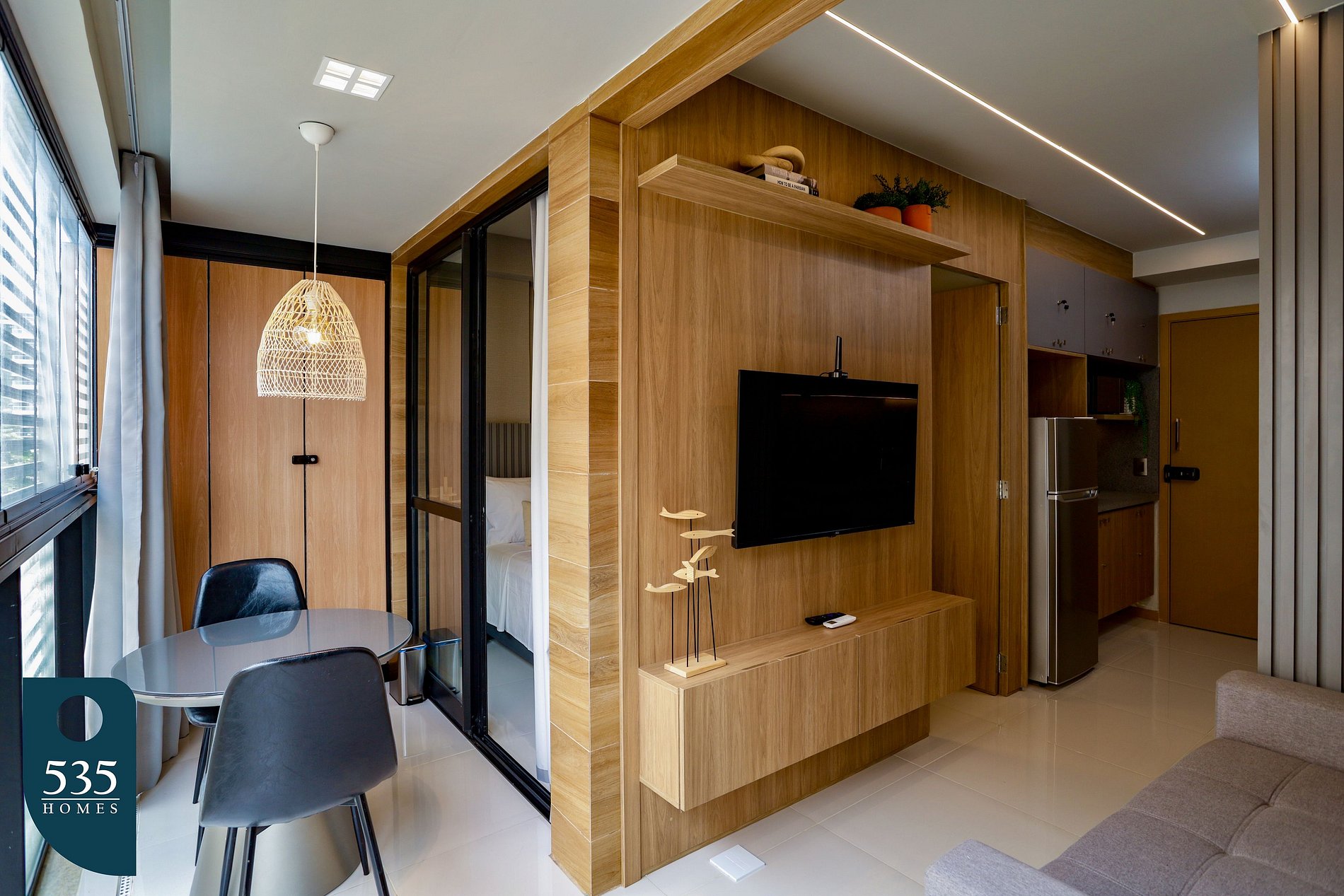 Espaço super bacana, como nas fotos, tudo novinho, todos os utensílios, cama e travesseiros confortáveis e de brinde uma pequena vista pro mar. A localização nem se fala. Dá pra cair na praia só atravessando a rua. E vc está num ponto estratégico pra vários pontos turísticos da cidade. Recomendo.