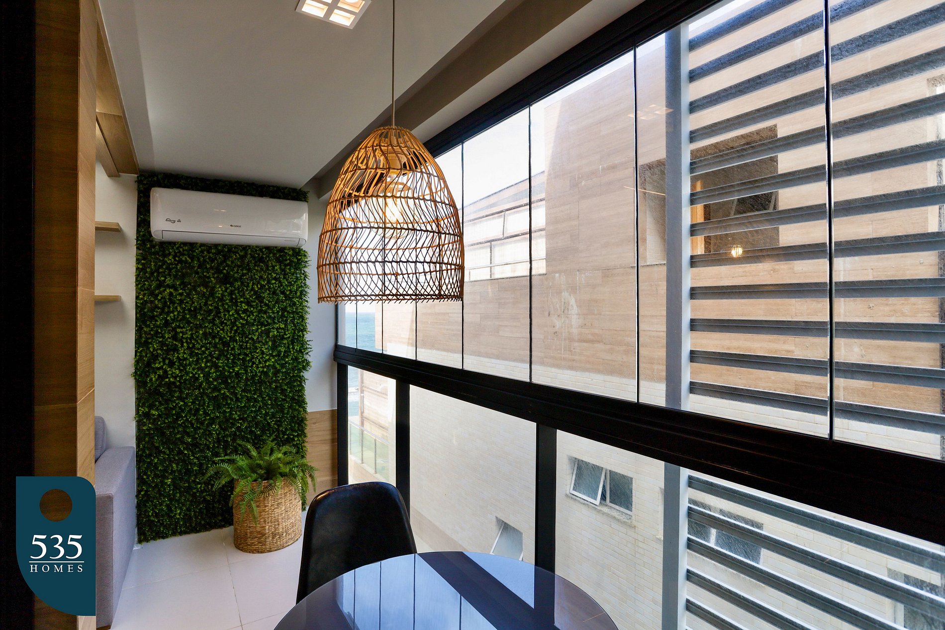 A varanda é um charme à parte, com uma mesa de jantar com cadeiras — um espaço perfeito para refeições ao ar livre ou para curtir o clima da cidade com tranquilidade.