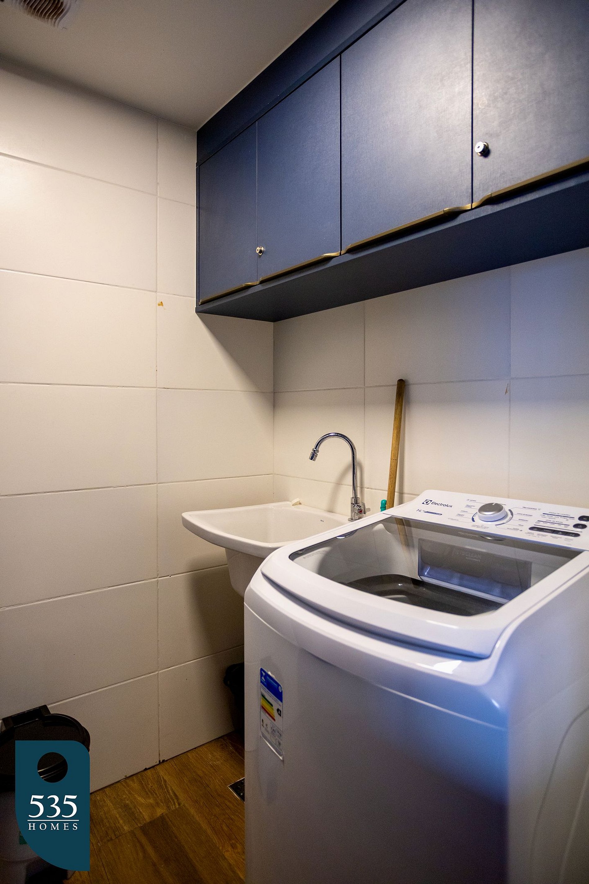Na lavanderia, você encontra exaustor de ar, máquina de lavar e centrifugar roupa, mesa e ferro de passar, varal de chão, pregadores e balde – tudo o que você precisa para manter a rotina em ordem, inclusive em estadias mais longas.