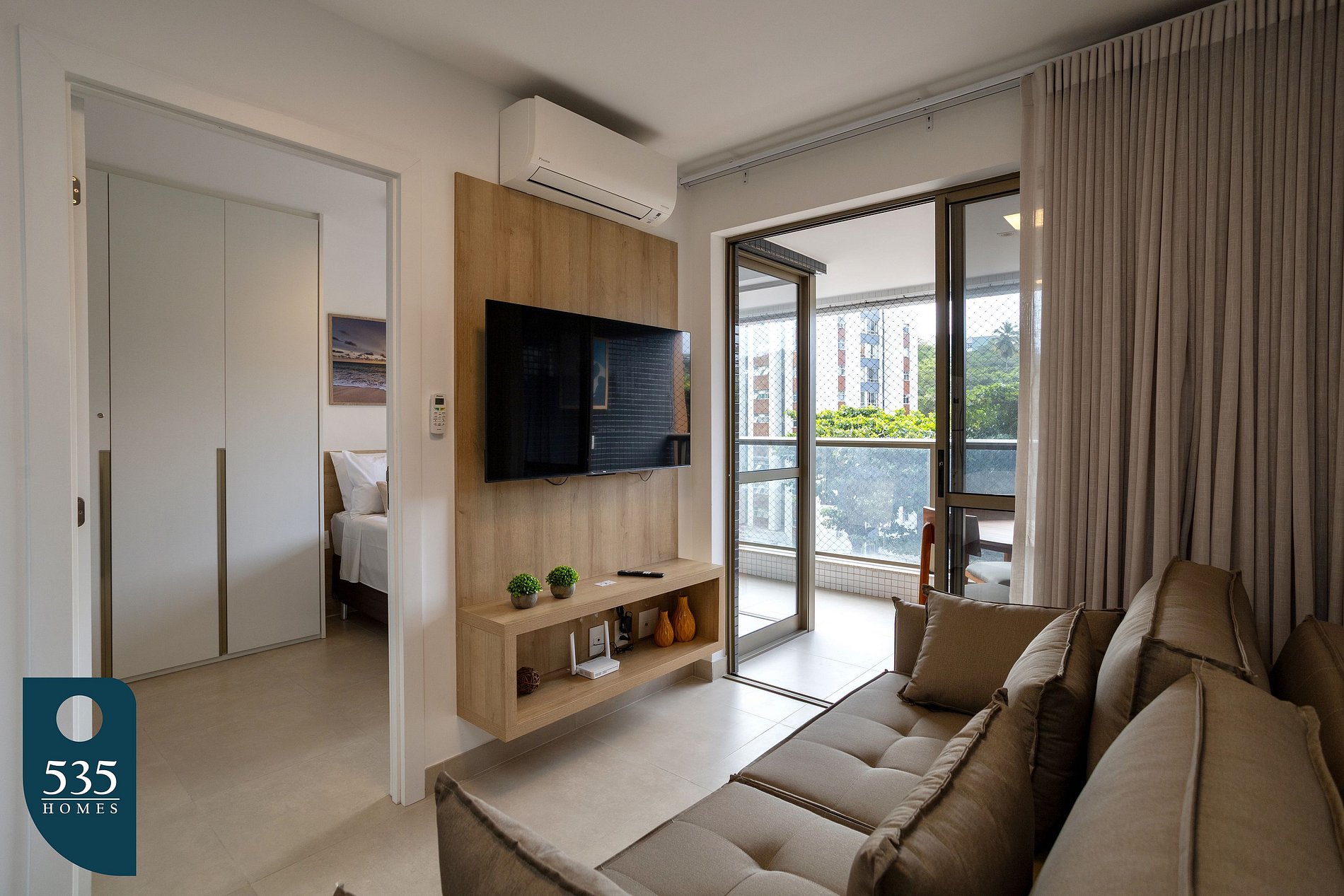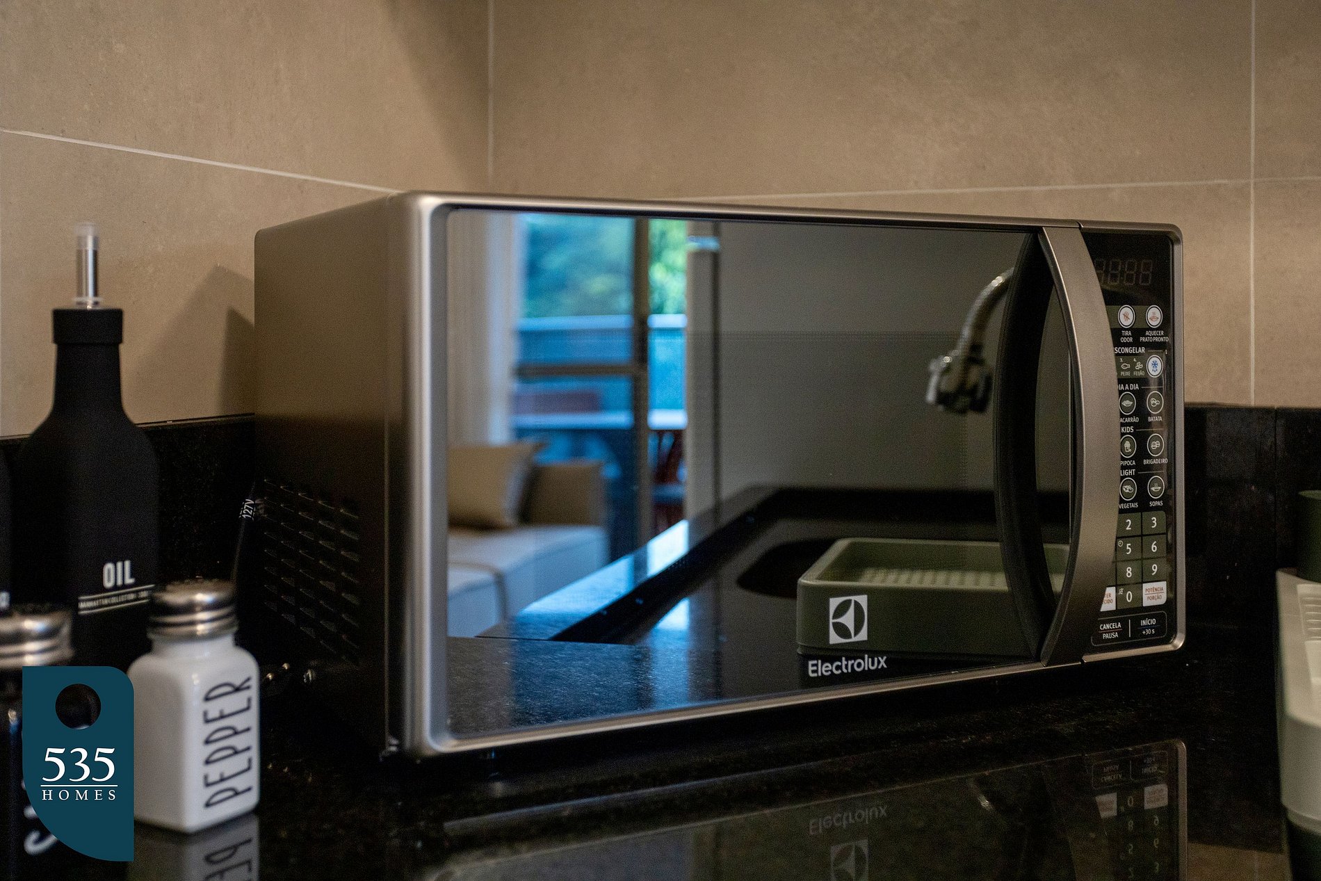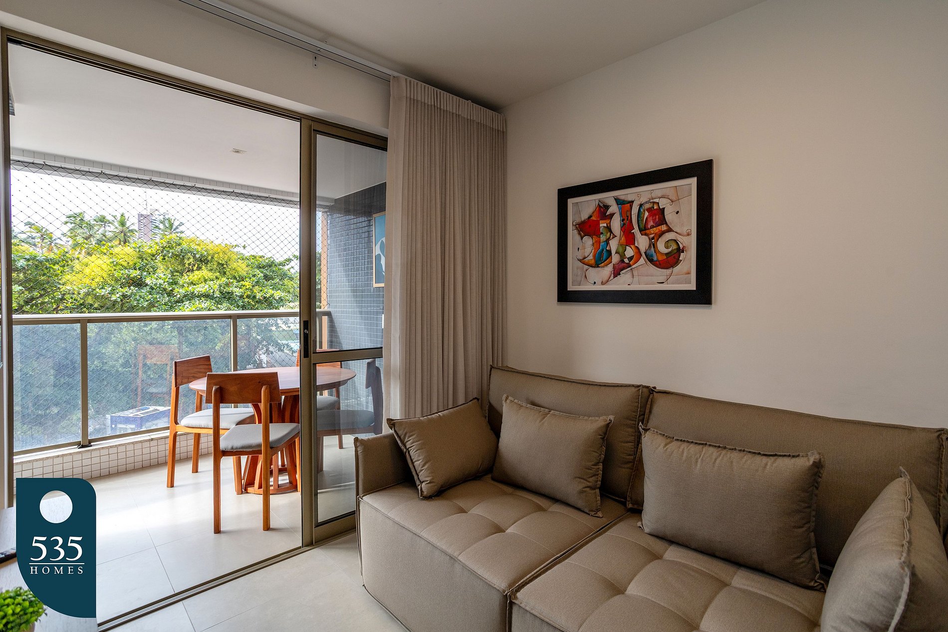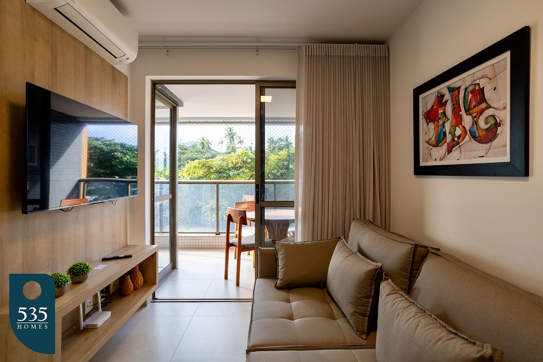 O apartamento está cuidadosamente equipado para proporcionar uma estadia confortável e prática. A cozinha conta com micro-ondas, sanduicheira, liquidificador, cafeteira italiana, torneira com filtro de água acoplado, além de diversos utensílios como xícaras de chá e de café com pires, taças de vinho, copos, pratos rasos, fundos e de sobremesa, jarra de suco, potes plásticos, escorredor de pratos, dispenser para detergente, rodinho e lixeira de pia, açucareiro, jogo de talheres, jogo americano, descanso de panela, jogo de panelas com tampas, frigideira, escorredor de macarrão, bowl, tábua de corte, peneira, abridores de lata e de vinho, descascador de legumes e jogo de facas. A sala é climatizada com ar-condicionado, conta com Smart TV de 50", cortina com blackout, poltronas e sofá, criando um ambiente agradável para descanso e entretenimento. Na varanda, há mesa com cadeiras, lixeira de pedal e tela de proteção, ideal para momentos de relaxamento ao ar livre. O quarto oferece conforto com ar-condicionado, cortina blackout, armário com gavetas, cabides, mesa de passar roupa compacta e ferro de passar. Já o banheiro dispõe de lixeira, ducha higiênica, secador de cabelo, dispenser de sabonete líquido, balde retrátil, vassoura, rodo de chão, varal de chão, pá de lixo e pregadores de roupa, garantindo praticidade durante toda a estadia.