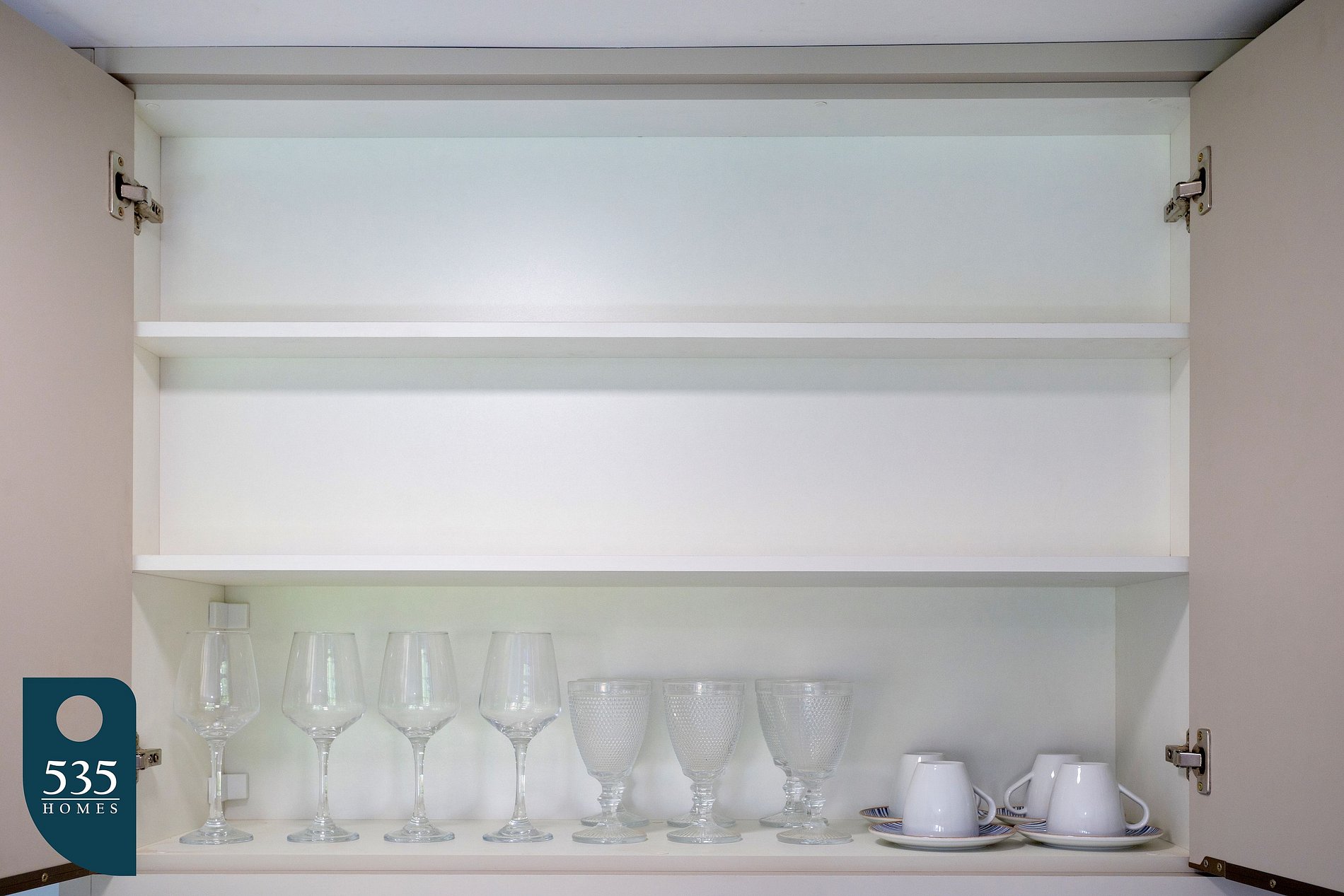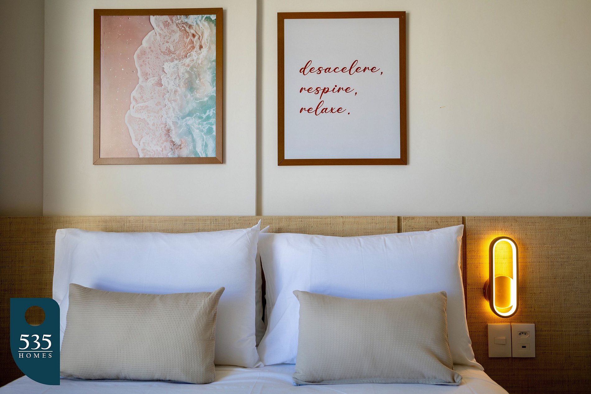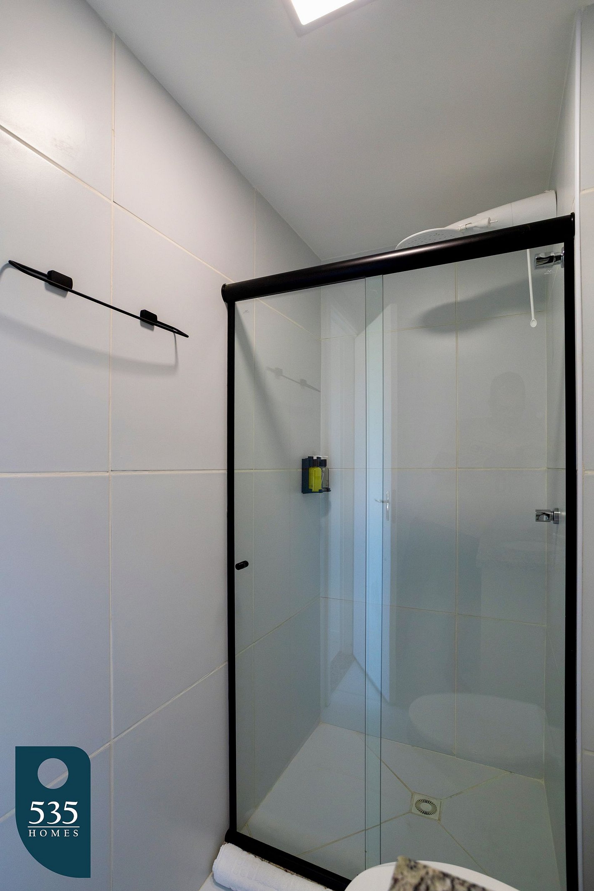 No quarto, há ar-condicionado, smart TV de 43", tábua e ferro de passar roupa, cabides e espelho de corpo inteiro. O banheiro dispõe de chuveiro elétrico, ducha higiênica, secador de cabelo, escova sanitária, lixeira com pedal e espelho. Para mais praticidade, o apartamento também inclui balde retrátil, varal de roupa e pregadores.